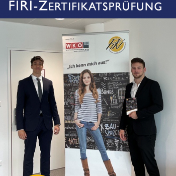 Jan Grootveld und Sebastian Sammer haben ihre Firi-Zertifikatsprüfung an der WKO-Wien mit ausgezeichnetem Erfolg und gutem Erfolg absolviert.