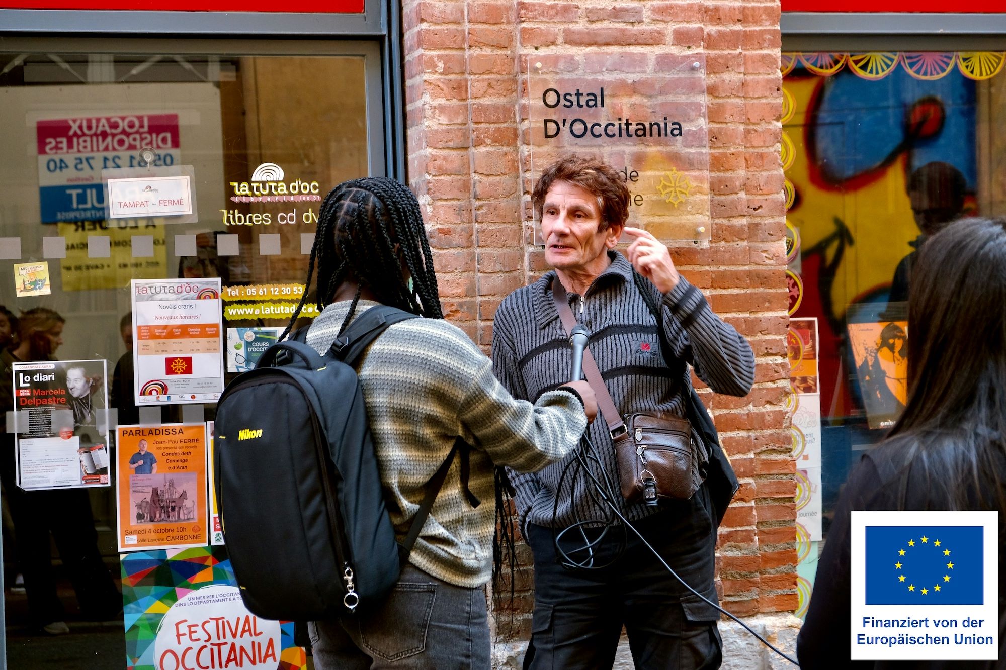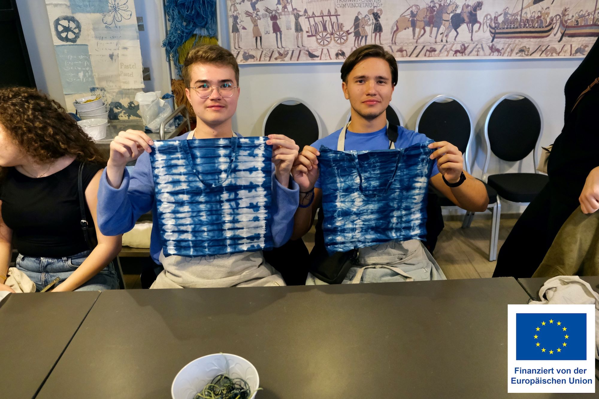 Mit einer Gruppe von 10 französischen Schülerinnen des Lycée professionnel durften wir dort an einem spannenden Projekt arbeiten: Gemeinsam drehten wir drei kurze Filme über Toulouse und die Geschichte des „pastel“, eines blauen Farbstoffs, der der Stadt im 15. und 16. Jahrhundert zu großem Wohlstand verhalf. Die Pastel-Pflanze (dt.: Färberwaid oder Deutscher Indigo) ist auch heute noch wegen ihrer Robustheit und ihres wassersparenden Anbaus sowie aufgrund ihrer heilenden Eigenschaften als natürlicher Inhaltsstoff für Kosmetika beliebt. Im Muséum du Pastel durften wir mit der Batik-Technik sogar unsere eigene Pastel-Tote Bag gestalten.