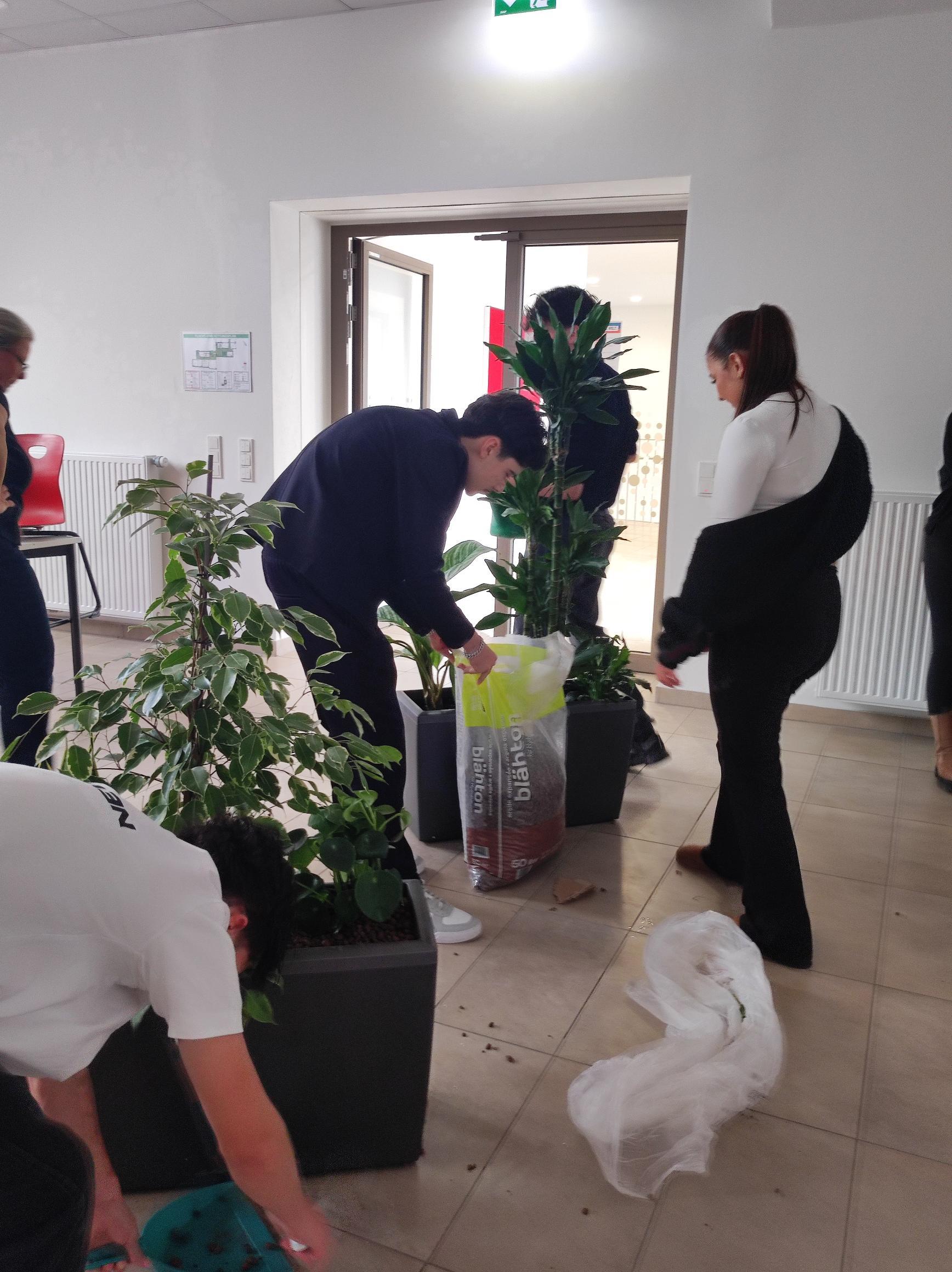 Unter fachmännischer Anleitung und mit jeder Menge Begeisterung machten sich die Schülerinnen und Schüler ans Werk. Große Tröge wurden vorbereitet und mit einer Auswahl an Pflanzen bestückt. Dabei wurde nicht nur Erde bewegt, sondern auch Teamgeist bewiesen – schließlich soll der COOL-Raum im 3. Stock ein Ort werden, an dem sich alle wohlfühlen.