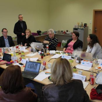 Gemeinsam mit Vertretern ihrer Partnerschulen aus Bielefeld/Deutschland und Ettelbruck/Luxemburg arbeiten Kolleginnen und Kollegen des IBC-: Hetzendorf...