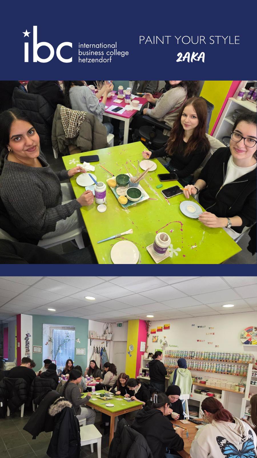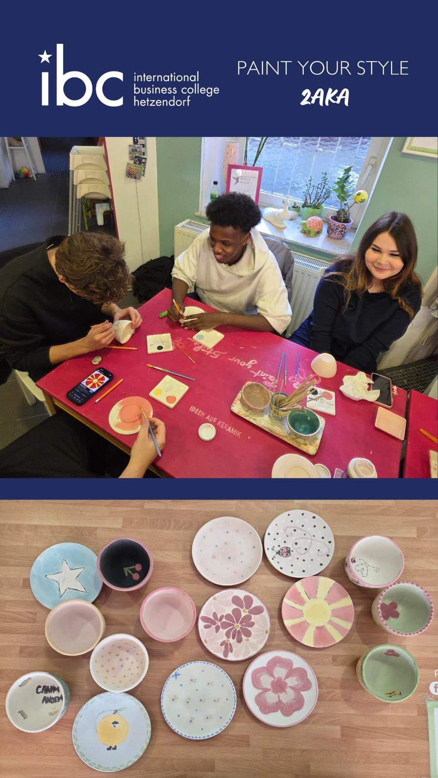 Die 2AKA tauschte das Klassenzimmer gegen das Atelier und bewies bei einem Besuch von „Paint Your Style“ vollen Einsatz. Unter dem Motto „Kreativität pur“ gestalteten die Schülerinnen und Schüler individuelle Keramikstücke und ließen ihrer Fantasie freien Lauf.