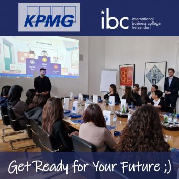 ibc-Schuler*innen des Ausbildungsschwerpunktes MCA – Management, Controlling, Accounting – des dritten Aufbaulehrganges und der vierten Handelsakademie auf Besuch bei KPMG Österreich.