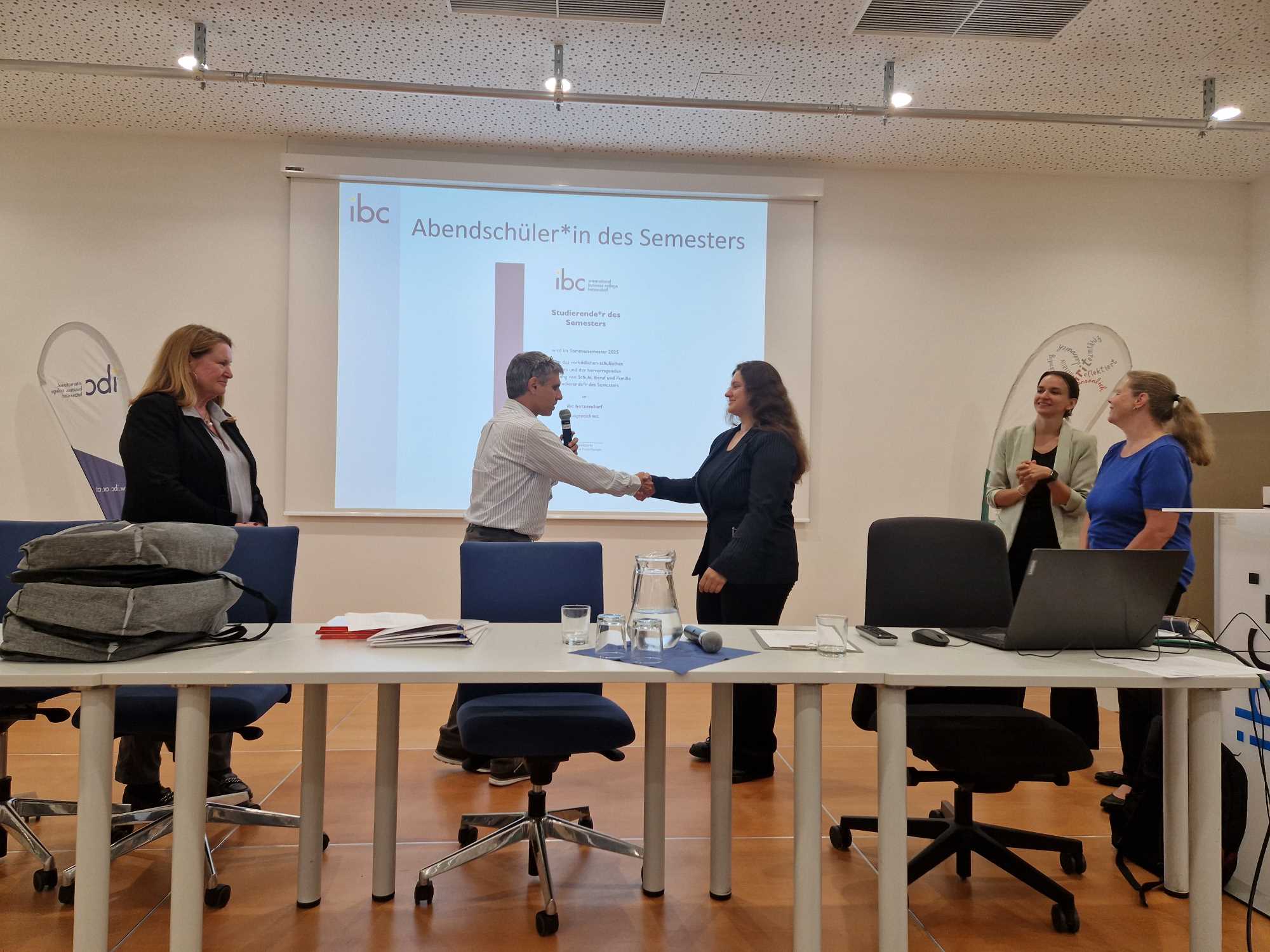 Die Lehrerinnen und Lehrer des ibc hetzendorf hatten die Preisträgerinnen und Preisträger vorgeschlagen. Mit dieser Auszeichnung soll nicht nur deren fachliche Kompetenz, sondern auch der Fleiß, das Engagement und die persönliche Entwicklung der Abendstudierenden gewürdigt werden.