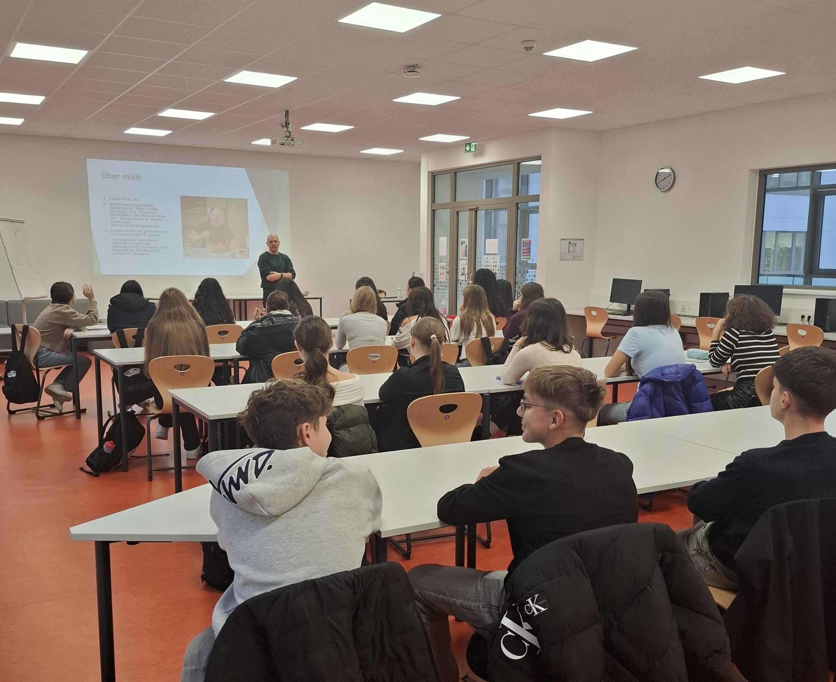 Der Workshop teilte sich in einen interaktiven Theorieblock und mehrere Gruppenarbeiten, um das theoretische Wissen praktisch anzuwenden. Dabei wurde unter anderem auf Themen wie präventive Gesundheit sowie die häufigsten Erkrankungen und Risiken im Zusammenhang mit einem ungesunden Lebensstil eingegangen. Abschließend wurden Tipps und Tricks für ausgewogene Mahlzeiten gegeben. Die Schüler*innen der ersten Jahrgänge waren sehr motiviert und haben eifrig auf Fragen geantwortet, ihre eigenen Erfahrungen und Gewohnheiten mit Mitschüler*innen geteilt und konnten Einiges an neuen Erkenntnissen mitnehmen.