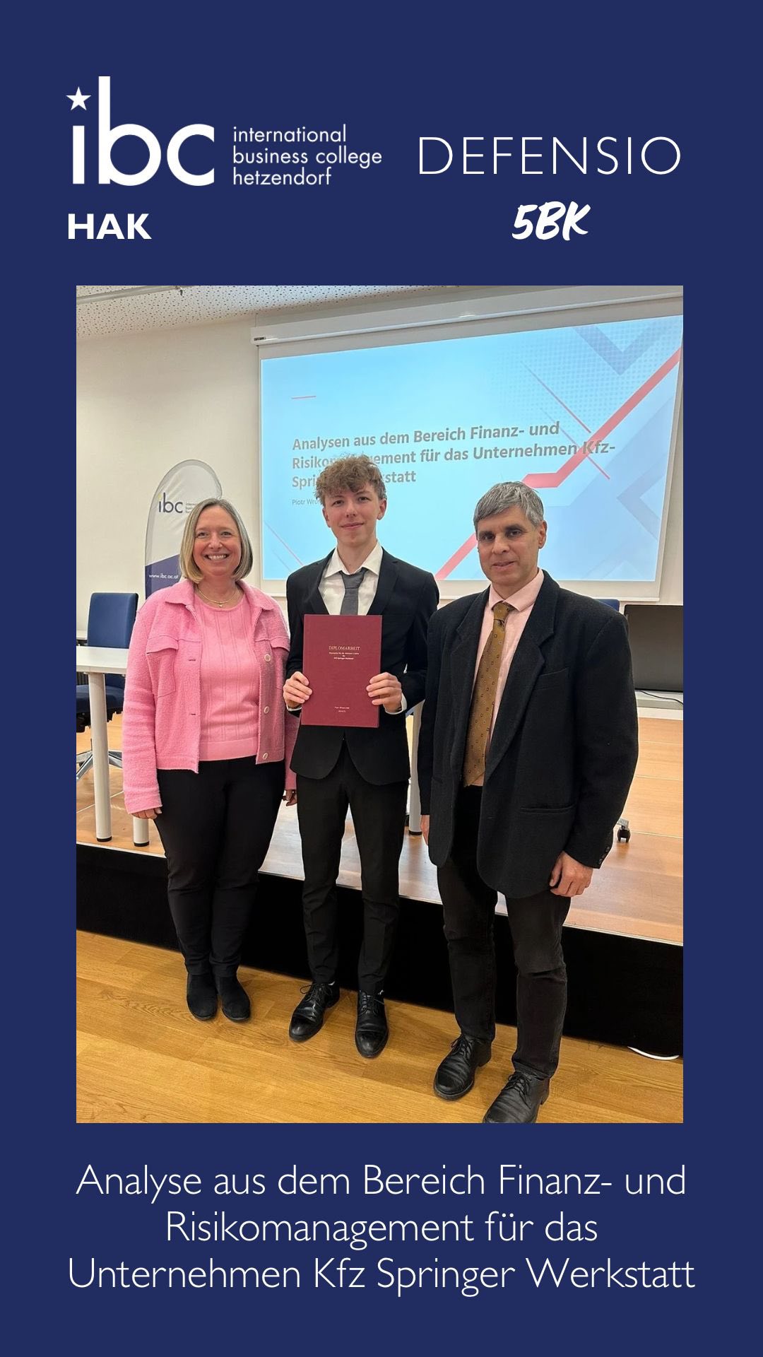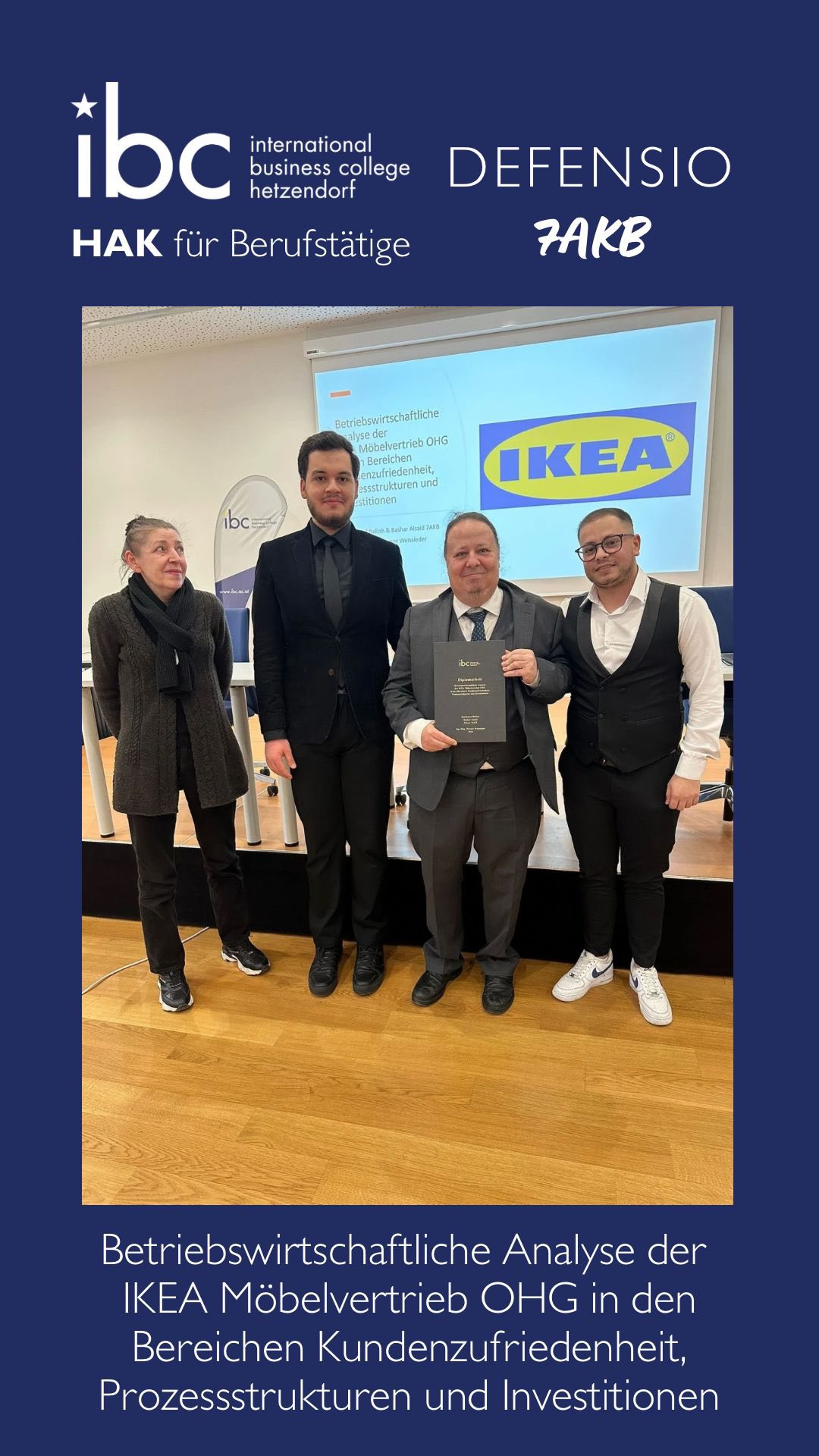 Ein wichtiger Meilenstein auf dem Weg zum Abschluss ist gesetzt: Im Rahmen des Matura-Wintertermins 2026 fanden am ibc hetzendorf die Defensios der Diplomarbeiten statt. Die Studierenden der Handelsakademie für Berufstätige sowie der Kolleg-Klassen präsentierten ihre praxisnahen Projekte und stellten sich im Anschluss den Fachfragen der Kommission.