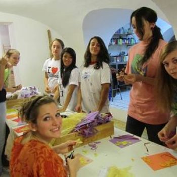 Dort lernten wir eine spezielle Technik von Druck kennen. Die Malerin...