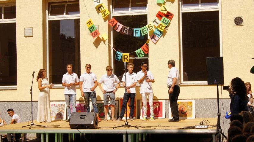 Vielen Dank an Frau Martha Rohde vom House Cafe, die uns gratis Brötchen lieferte, den zahlreichen Schüler/innen, die die Speisen und Getränke fürs internationale Buffet bereitstellten, den SMS4U Schülerinnen der 2AKA, die das Buffet betreuten und den Hof gestalteten.