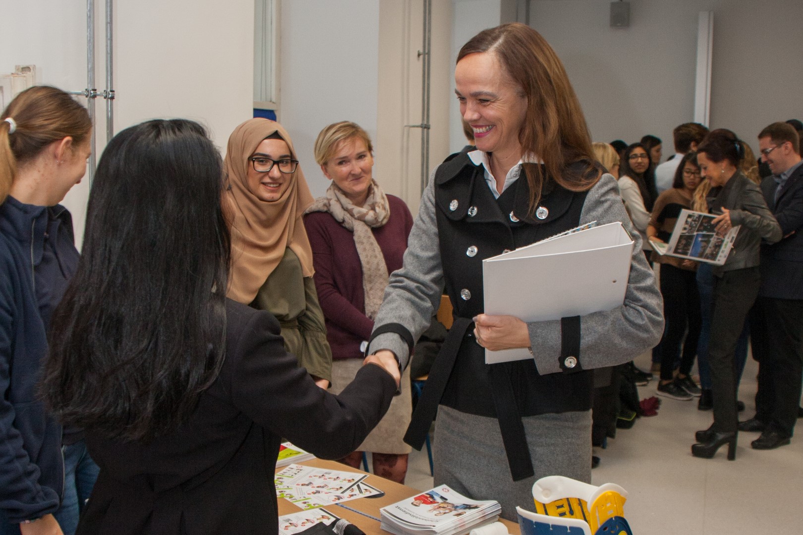 Bundesministerin Dr. Hammerschmid konnte sich am 3. November 2016 ein Bild davon machen. Sie war von den verschiedenen Peer-Programmen überaus begeistert: Schüler/-innen unterstützen Schüler/-innen in unterschiedlichen Situationen: Beim Lernen (Peer-Learning), beim Umgang zwischen den verschiedenen Kulturen (Cultural Tutors), bei Notfällen (Schulsanitätsdienst) und bei der Verbesserung des Klassenklimas (Peer-Mediation). Die SMS4U-Gruppe (Schoolmarketingservice for You) hilft bei der Organisation verschiedener Projekte (Fest der Kulturen, Gesundheitstage, Flüchtlingsarbeit, Schülervertretungswahlen, Tag der offenen Tür) und gestaltet den Jahres- und Nachhaltigkeitsbericht des ibc-: hetzendorf.