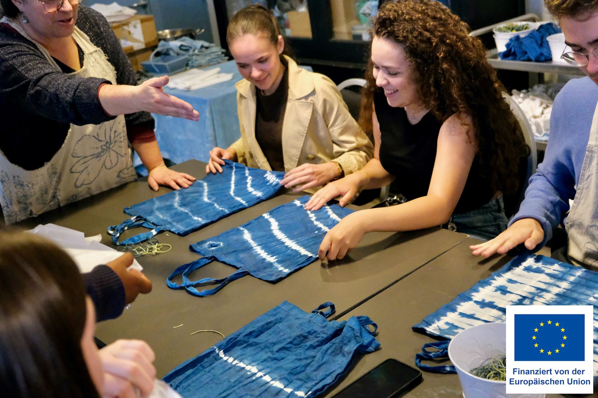 Mit einer Gruppe von 10 französischen Schülerinnen des Lycée professionnel durften wir dort an einem spannenden Projekt arbeiten: Gemeinsam drehten wir drei kurze Filme über Toulouse und die Geschichte des „pastel“, eines blauen Farbstoffs, der der Stadt im 15. und 16. Jahrhundert zu großem Wohlstand verhalf. Die Pastel-Pflanze (dt.: Färberwaid oder Deutscher Indigo) ist auch heute noch wegen ihrer Robustheit und ihres wassersparenden Anbaus sowie aufgrund ihrer heilenden Eigenschaften als natürlicher Inhaltsstoff für Kosmetika beliebt. Im Muséum du Pastel durften wir mit der Batik-Technik sogar unsere eigene Pastel-Tote Bag gestalten.