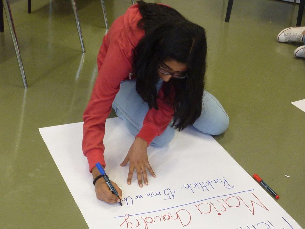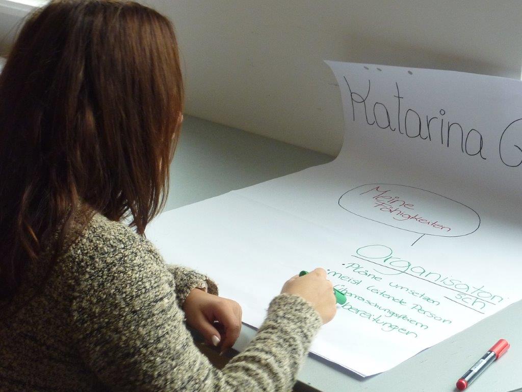 Zum Abschluss gestalteten wir ein Plakat, welches uns in unseren wichtigsten Stärken und Schwächen darstellen sollte, dieses präsentierten wir anschließend in der Gruppe, dabei mussten wir auch auf die Körperhaltung und Körpersprache aufpassen. Dies stellte eine Übung zur Selbstpräsentation für ein Bewerbungsgespräch dar. Wir erhielten Feedback und viele Verbesserungstipps zu unseren Präsentationen.