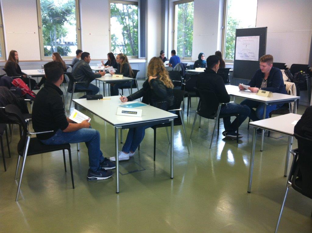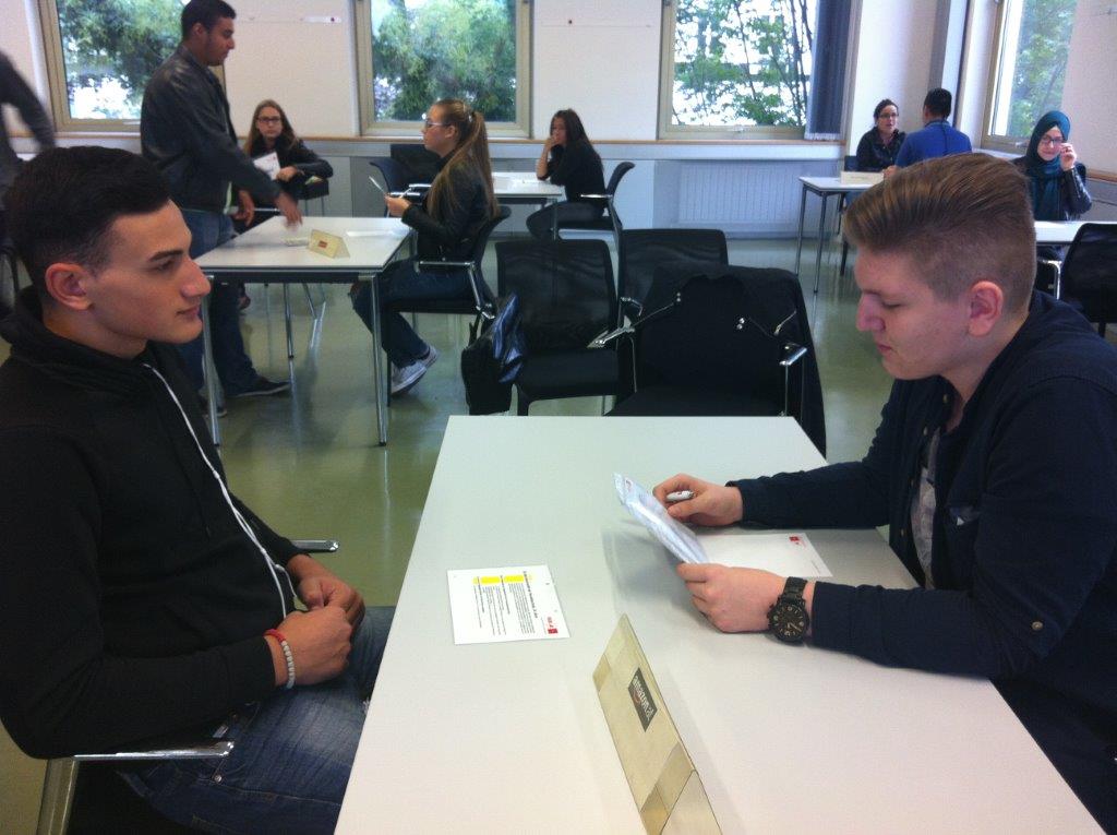 Zum Schluss führten wir alle Bewerbungsgespräche, eine Gruppe waren unterschiedliche Bewerber mit verschiedenen Qualifikationen die andere Gruppe die Arbeitgeber. Jeder tat sein Bestes und am Ende gaben die Arbeitgeber bekannt wen sie einstellen würden, mit Begründung natürlich. Als Abschluss machten wir eine kleine Feedbackrunde.