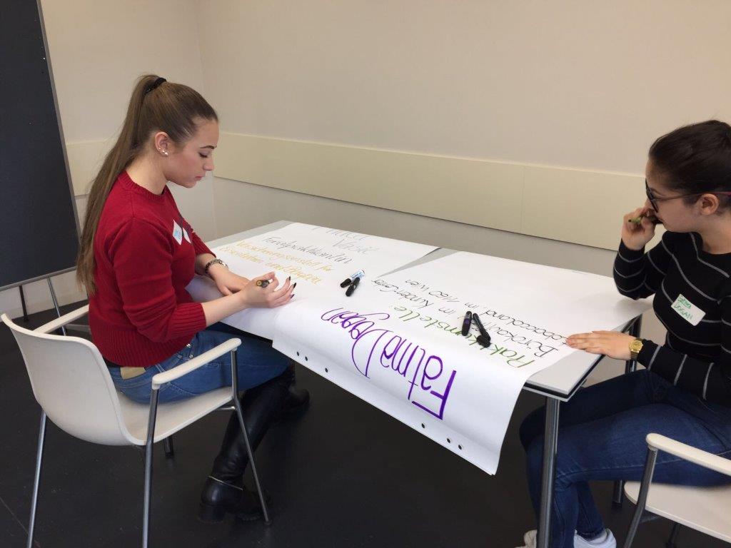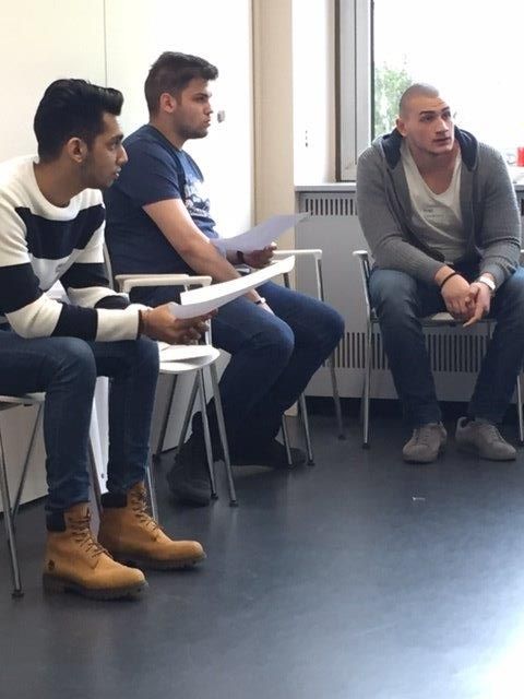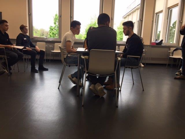 Nach einer kurzen Pause erhielten wir einen Zeitungsausschnitt zu dem wir uns für eine Gruppendiskussionsrunde vorbereiten mussten. 4 Schüler wurden nach dem Zufallsprinzip ausgewählt und führten die Diskussion durch. Die anderen Schüler beobachteten diese und gaben anschließend den Teilnehmern der Rund Feedback.