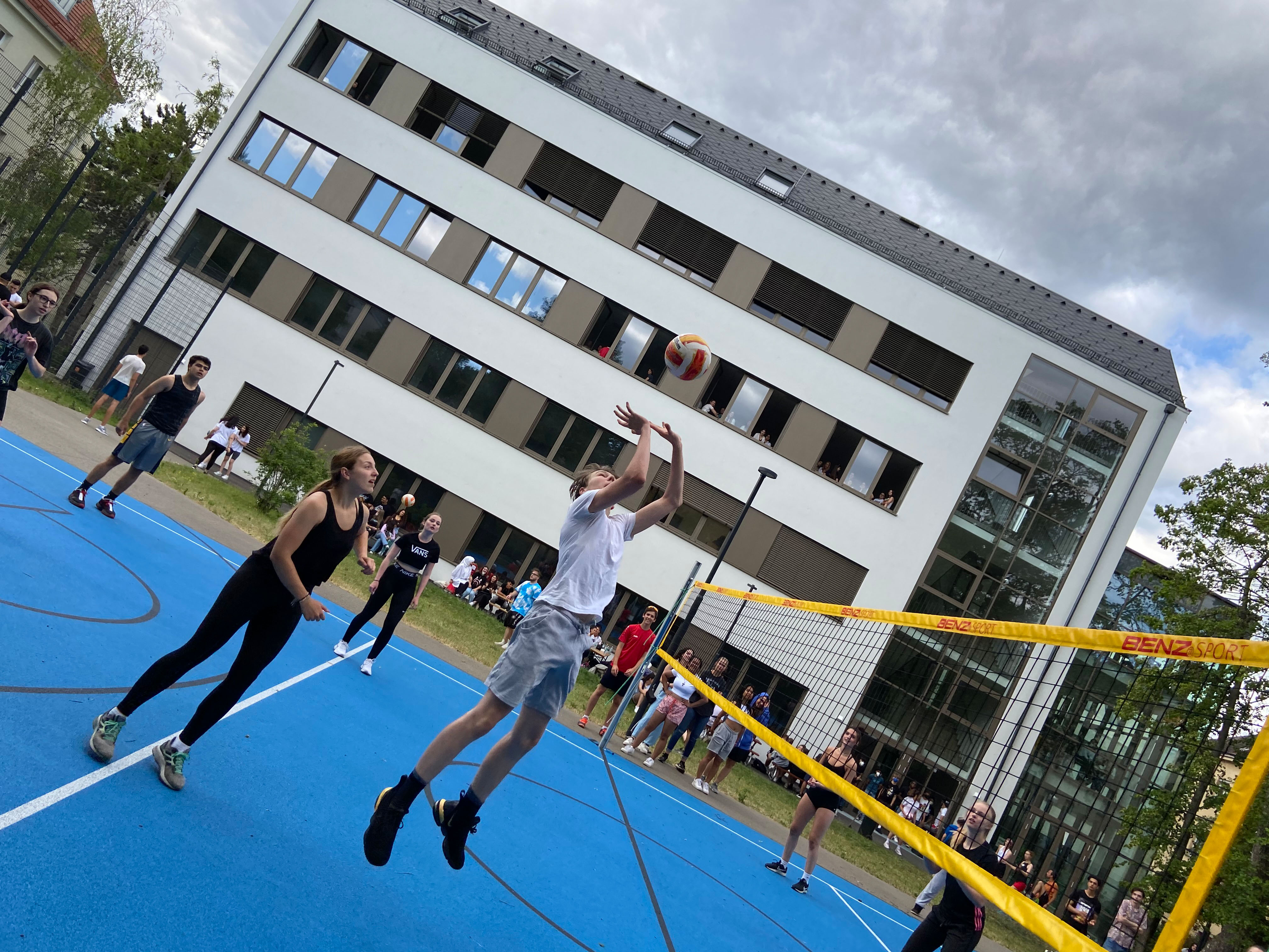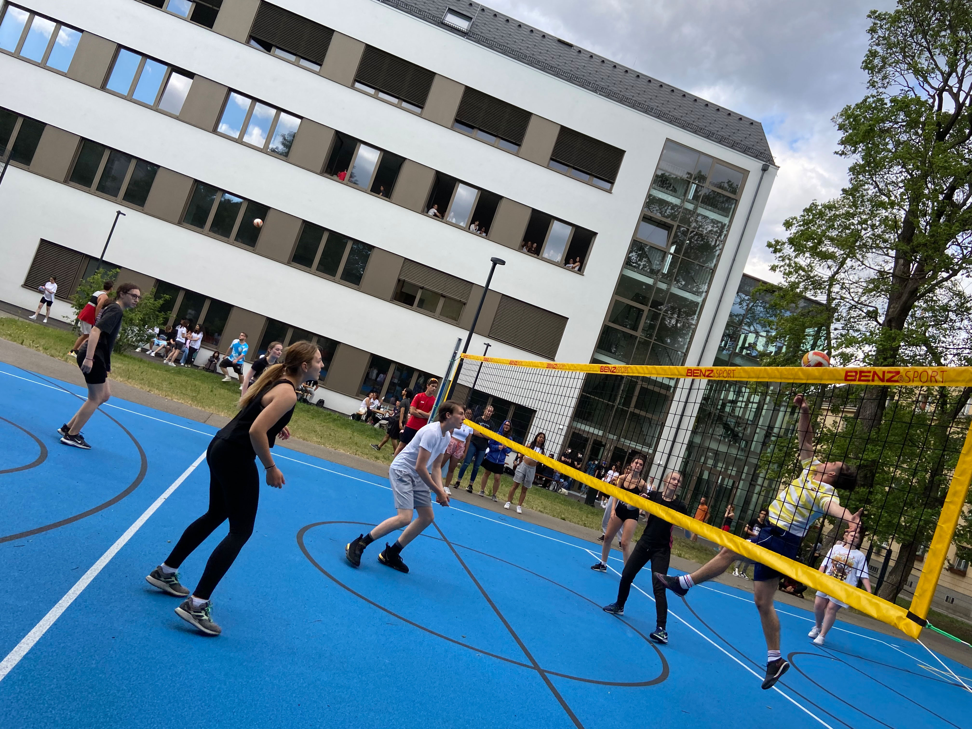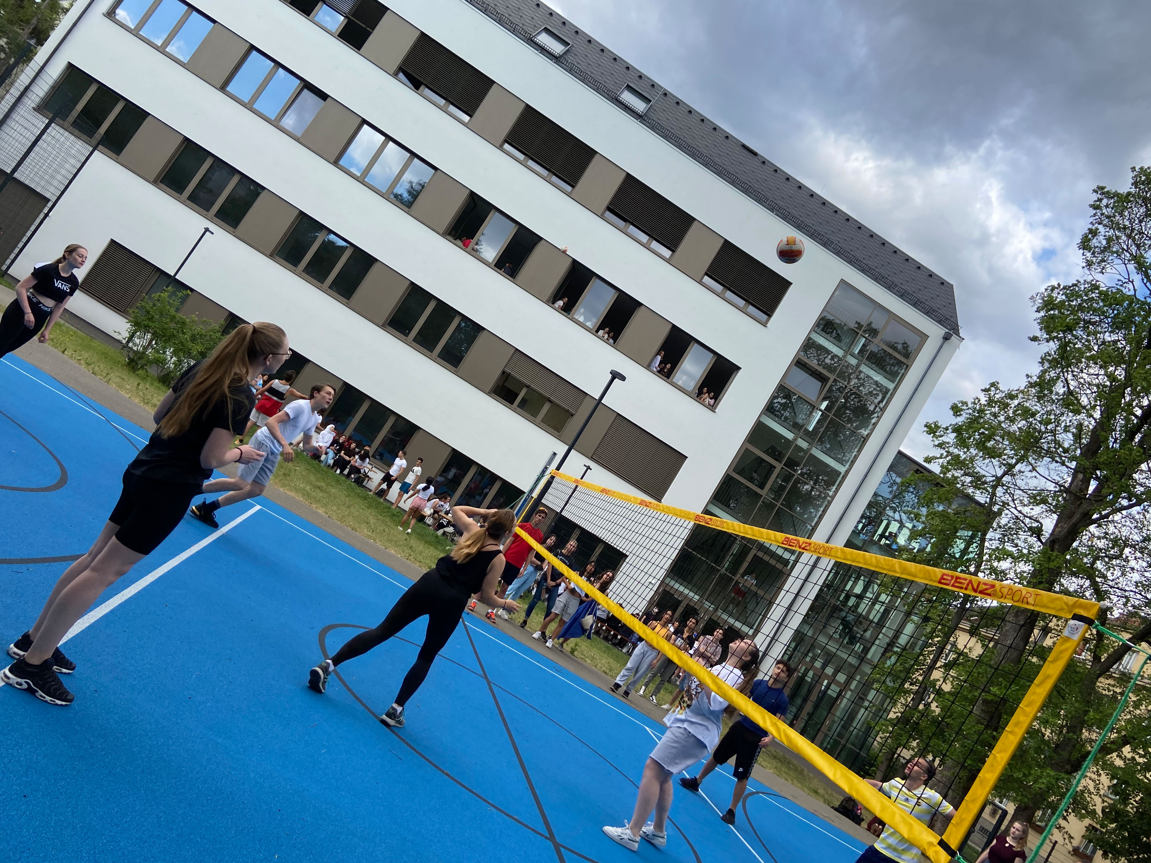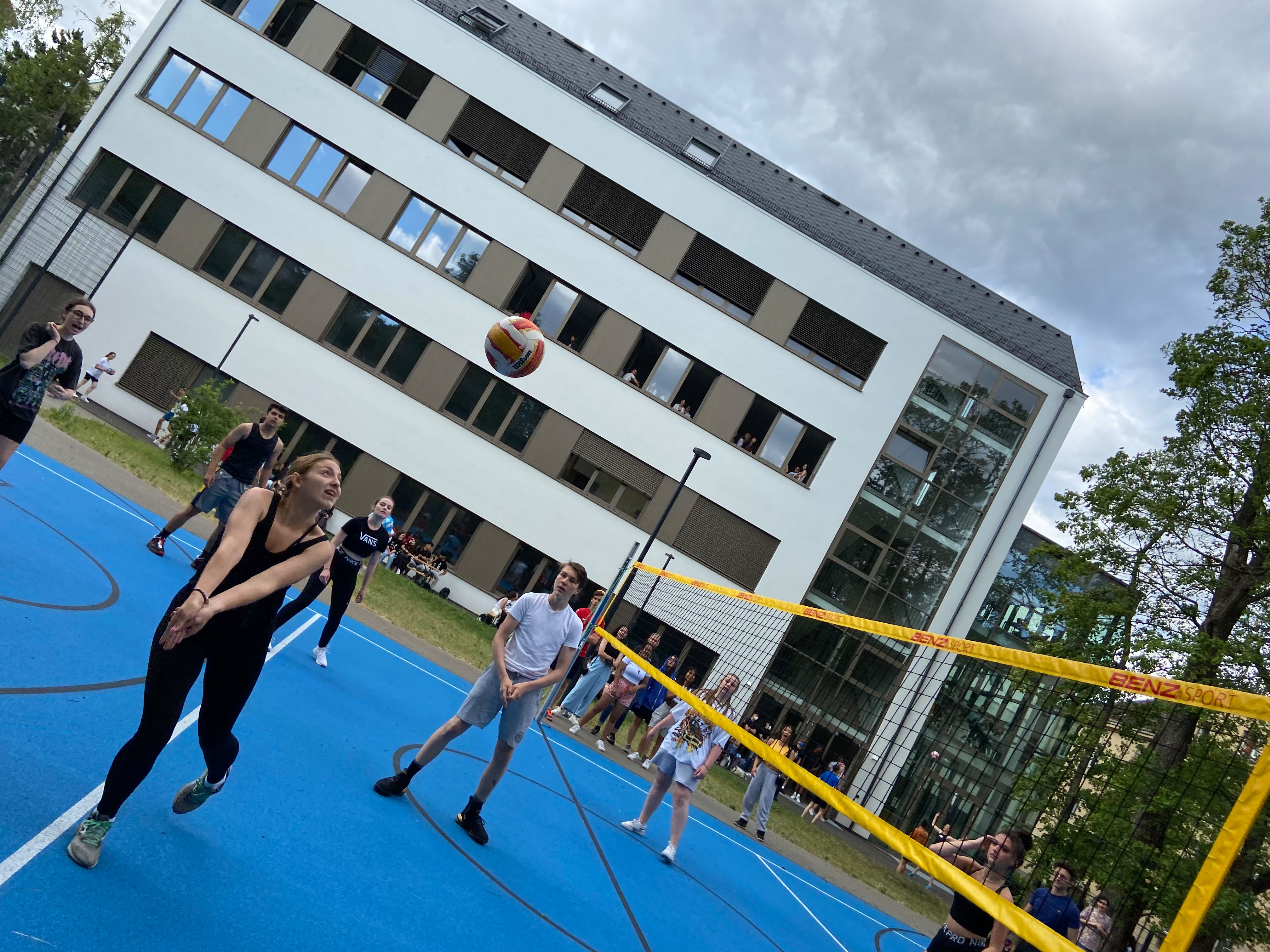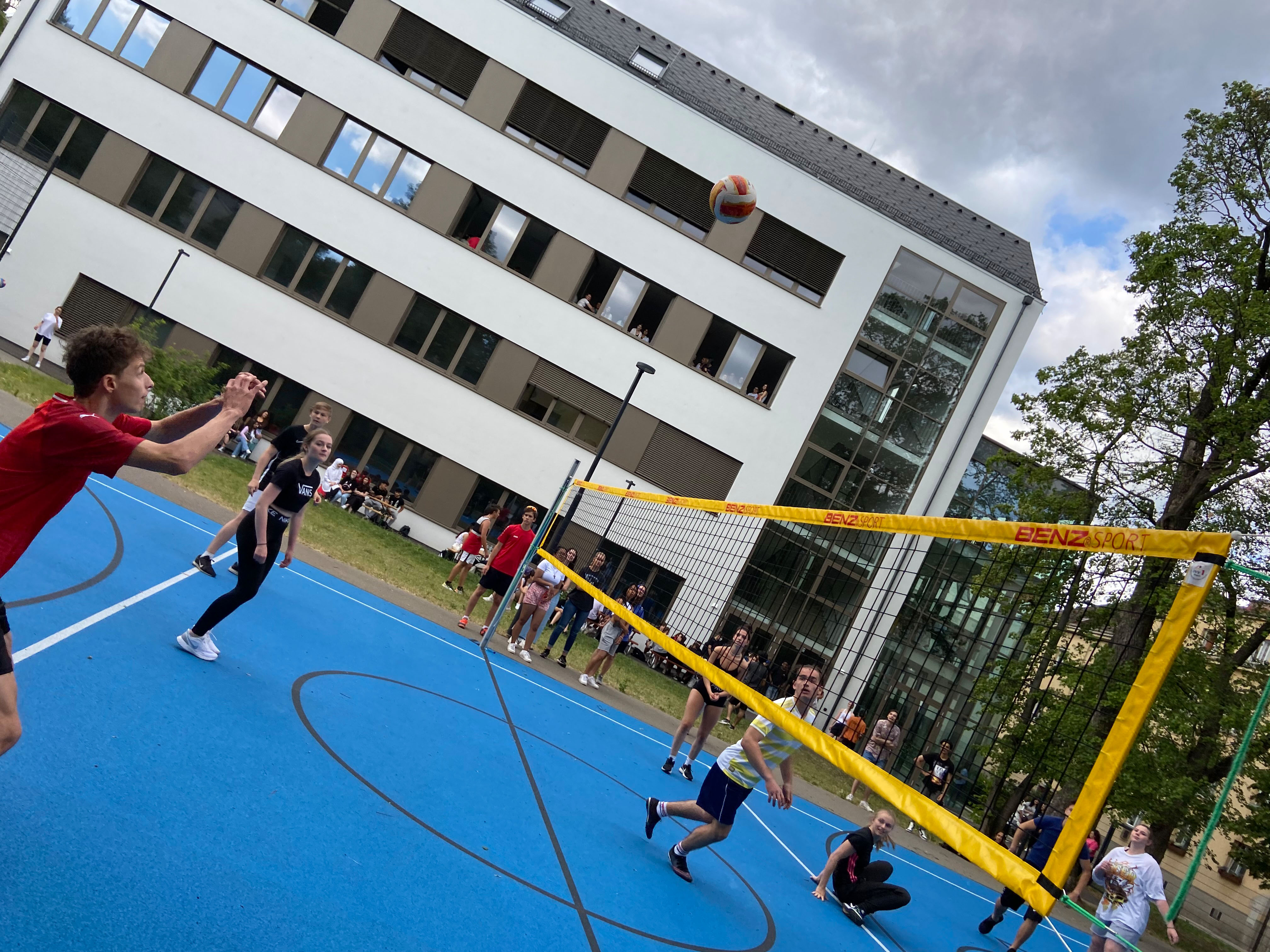 Am Mittwoch, den 30.06.2021, war es nach mehr als einem ganzen Jahr Corona-Pandemie endlich wieder Zeit, dass unsere Schüler*innen und Lehrer*innen Ihre sportlichen Talente zeigten. Bei herrlichem Wetter spielten die Gruppen im schuleigenen Sportpark miteinander Volleyball.