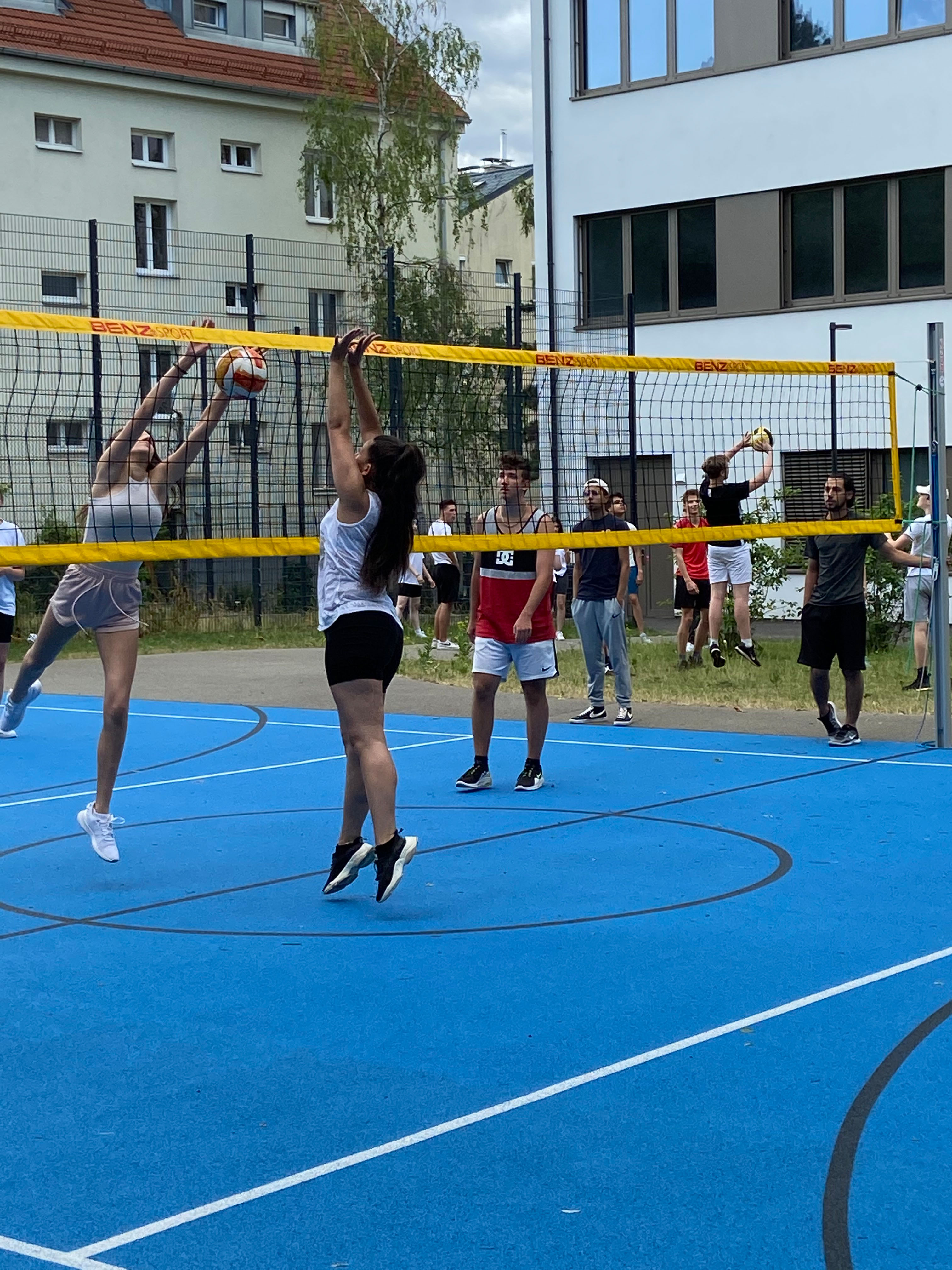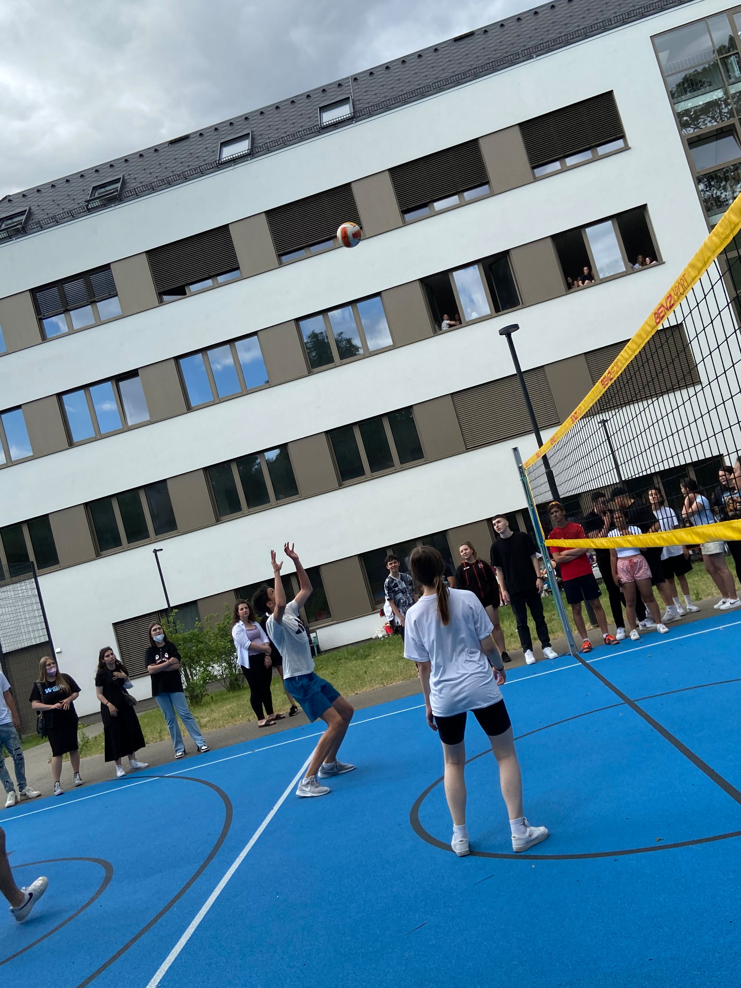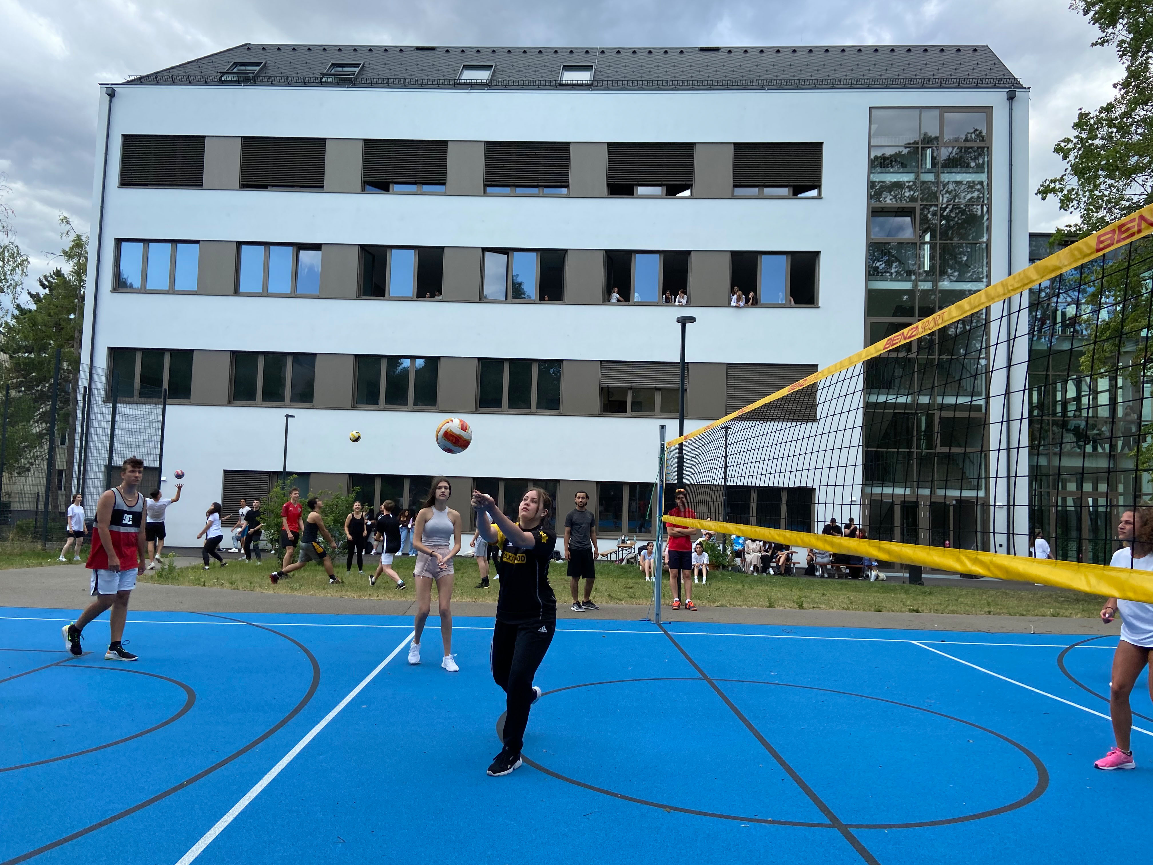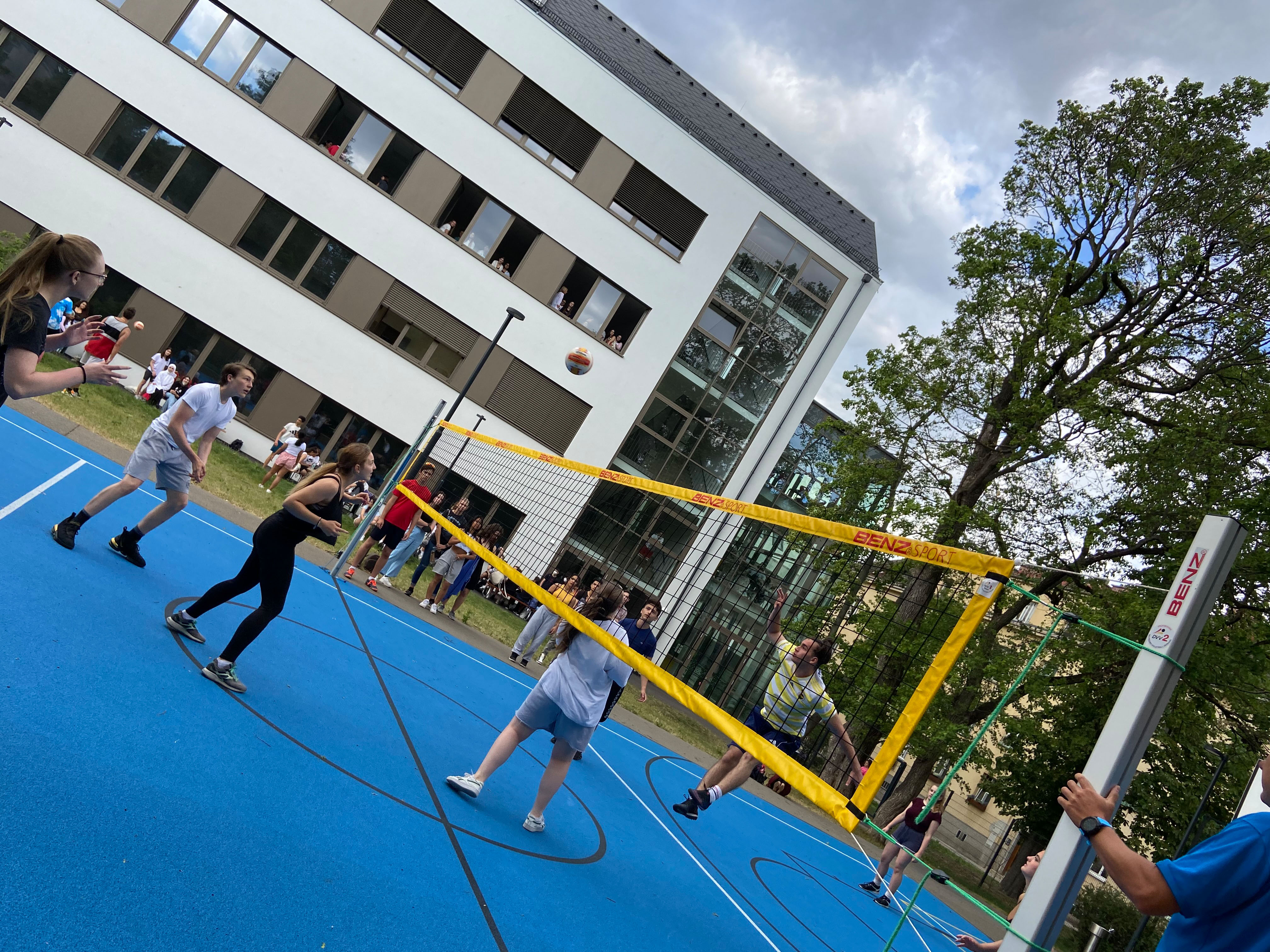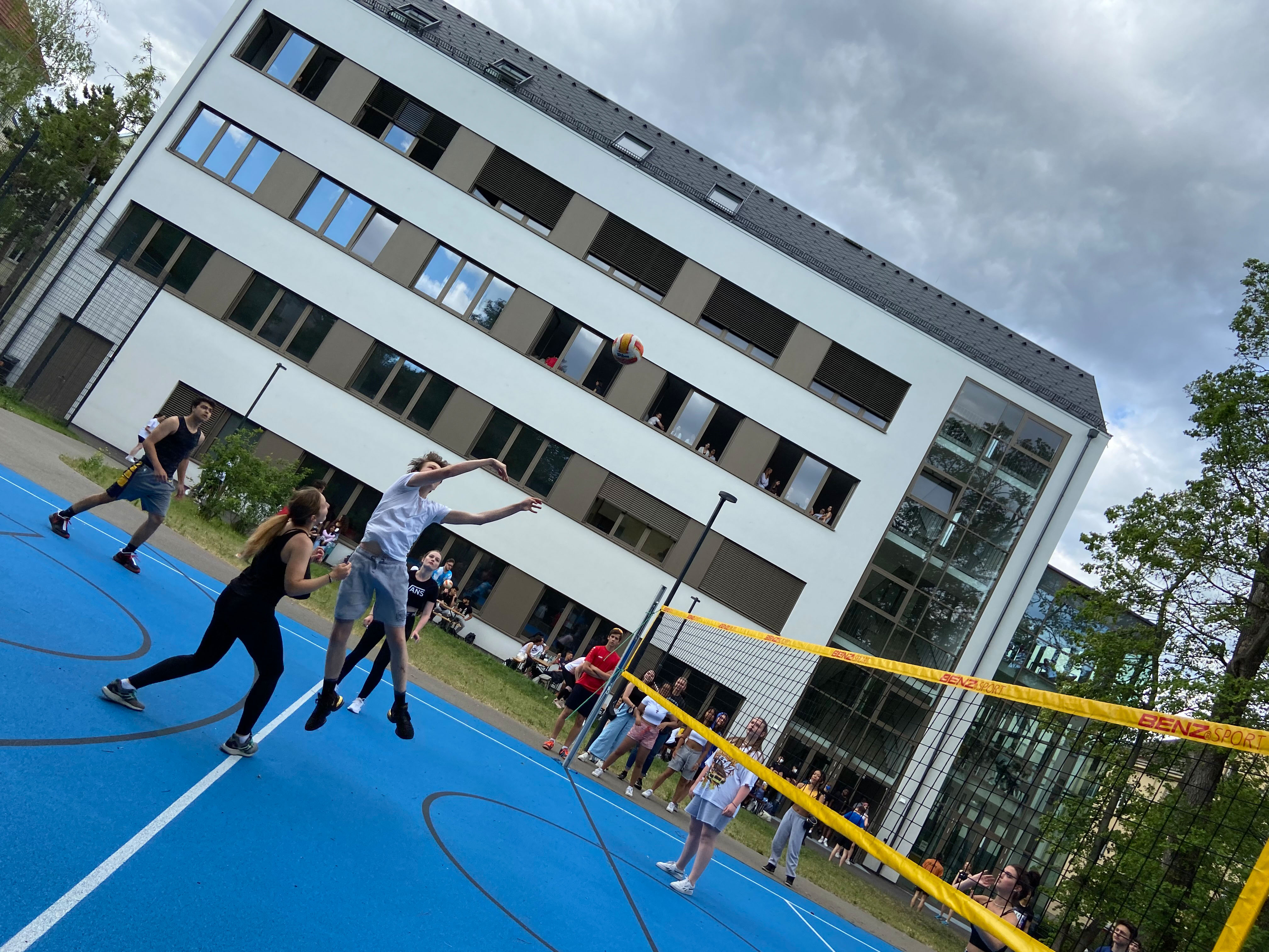 Am Mittwoch, den 30.06.2021, war es nach mehr als einem ganzen Jahr Corona-Pandemie endlich wieder Zeit, dass unsere Schüler*innen und Lehrer*innen Ihre sportlichen Talente zeigten. Bei herrlichem Wetter spielten die Gruppen im schuleigenen Sportpark miteinander Volleyball.