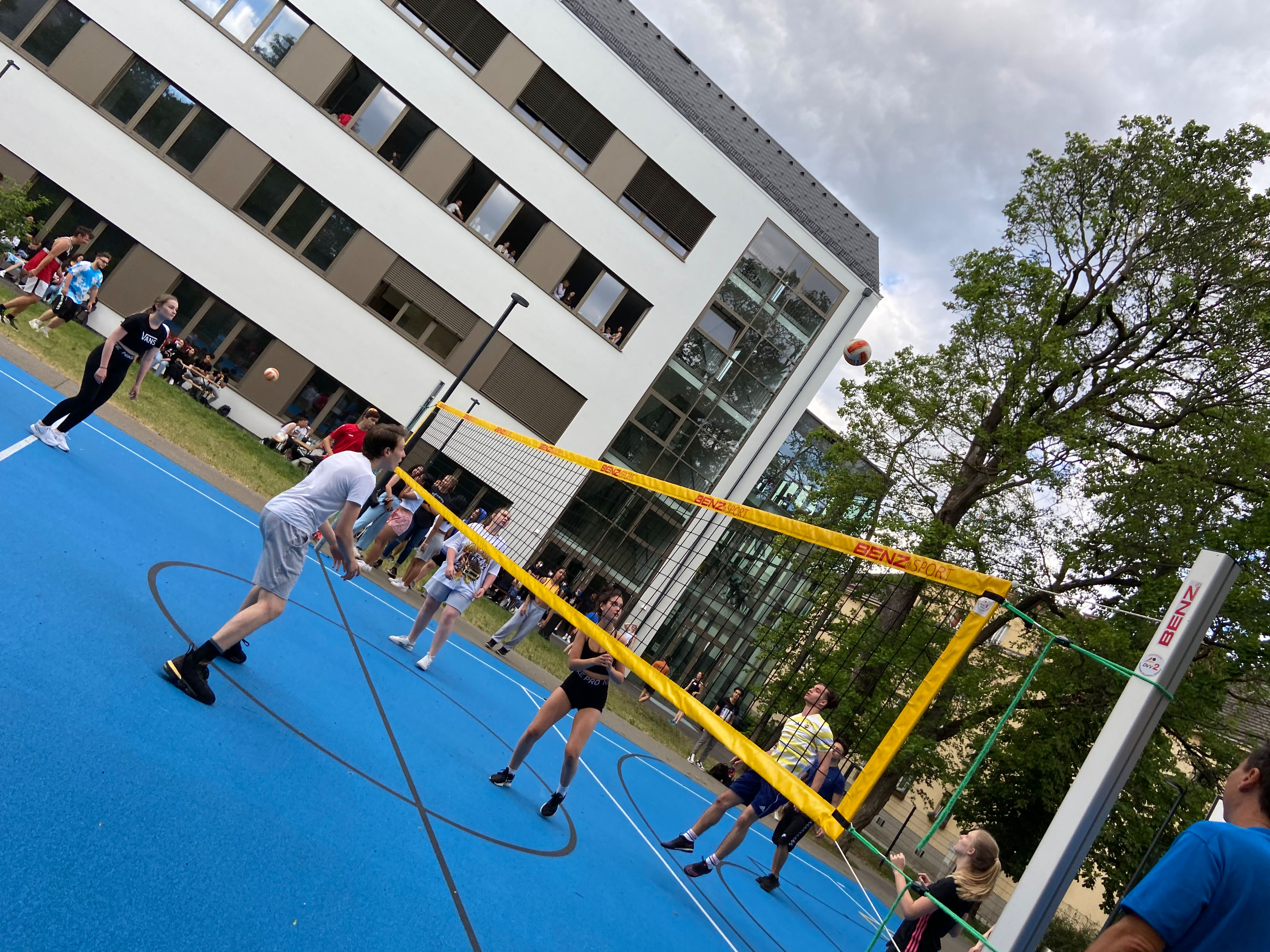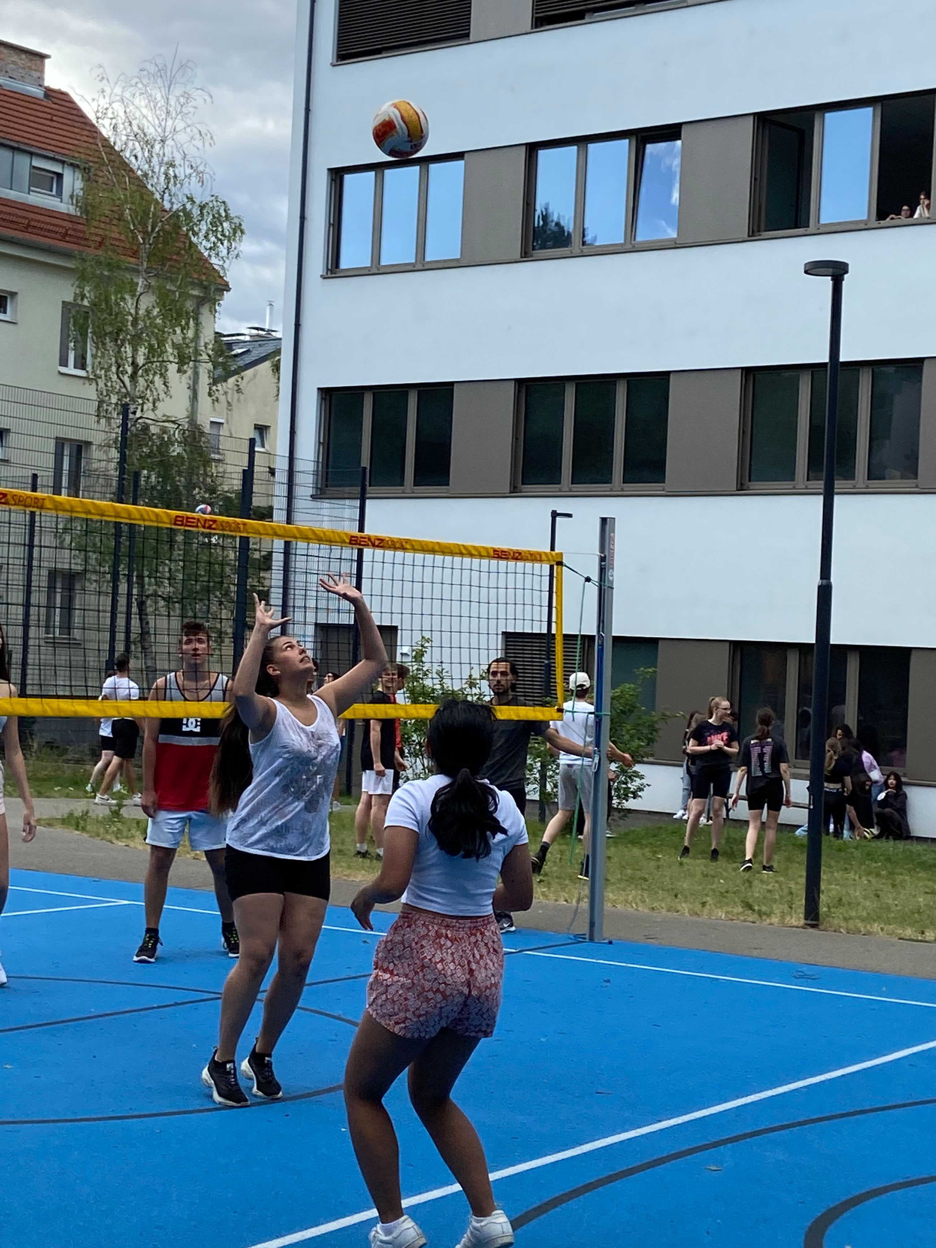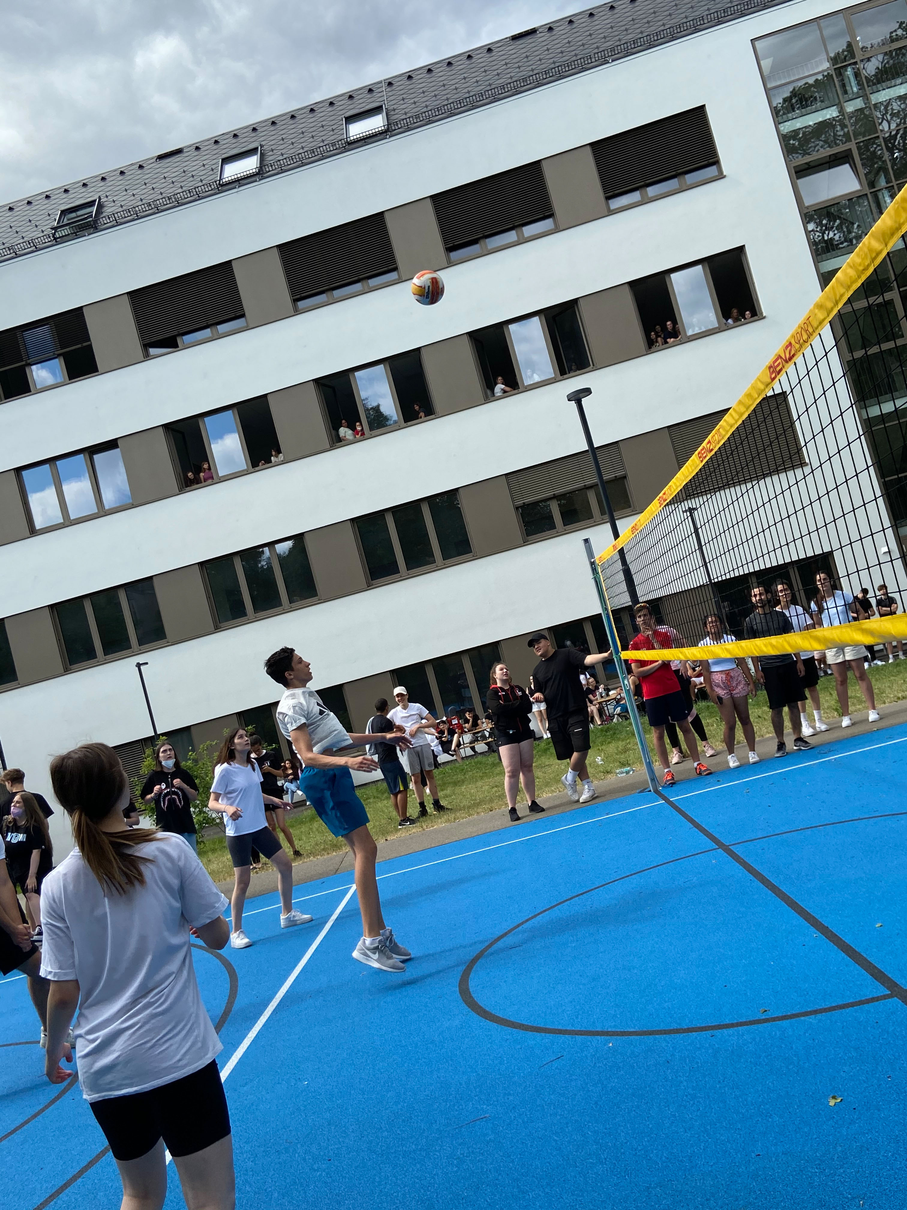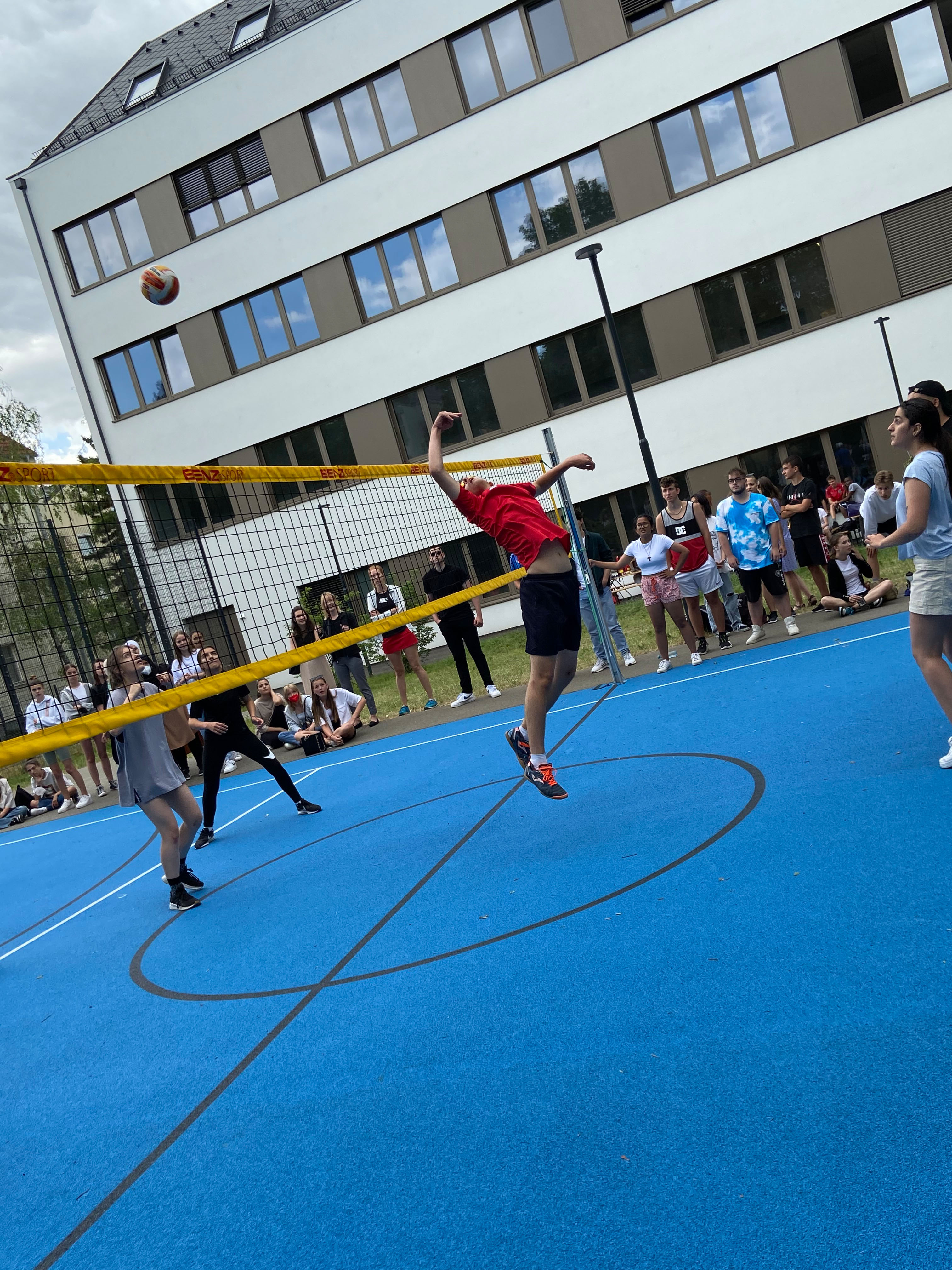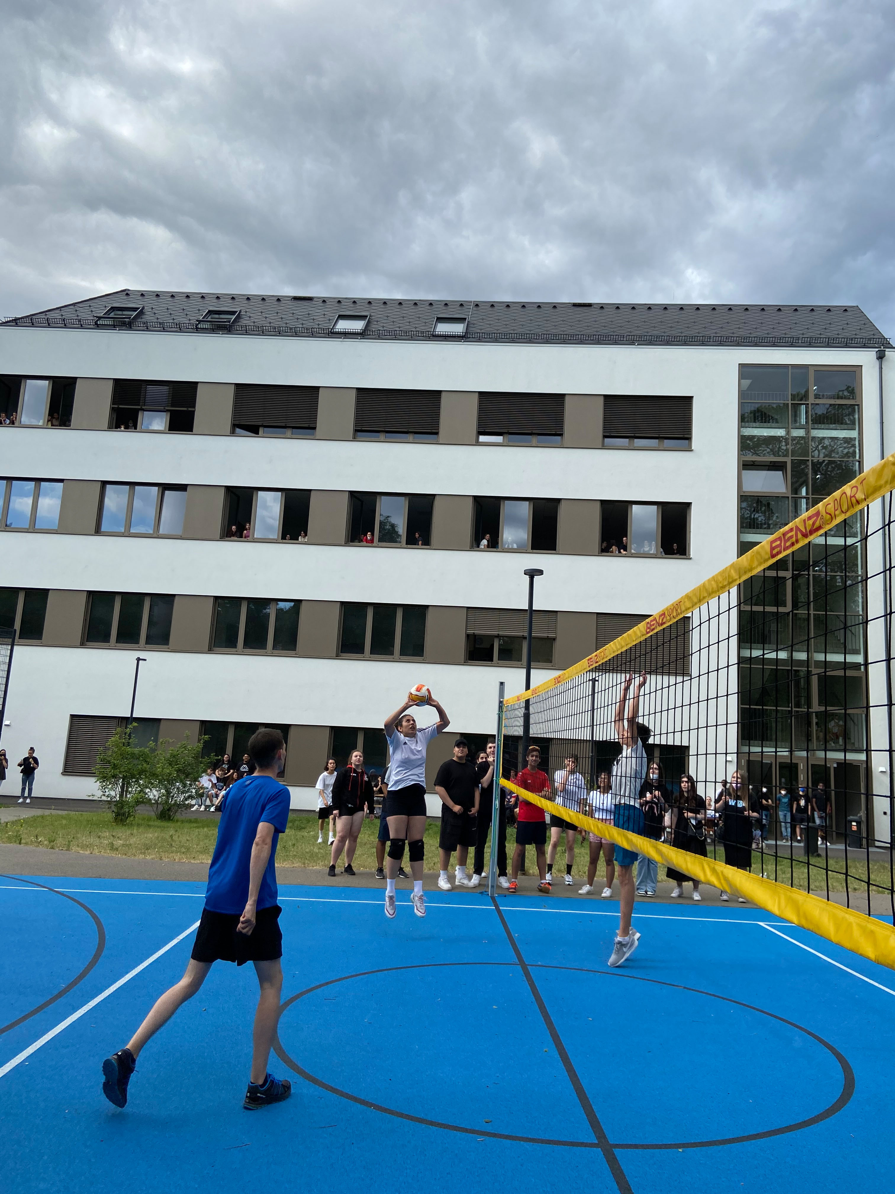 Am Mittwoch, den 30.06.2021, war es nach mehr als einem ganzen Jahr Corona-Pandemie endlich wieder Zeit, dass unsere Schüler*innen und Lehrer*innen Ihre sportlichen Talente zeigten. Bei herrlichem Wetter spielten die Gruppen im schuleigenen Sportpark miteinander Volleyball.