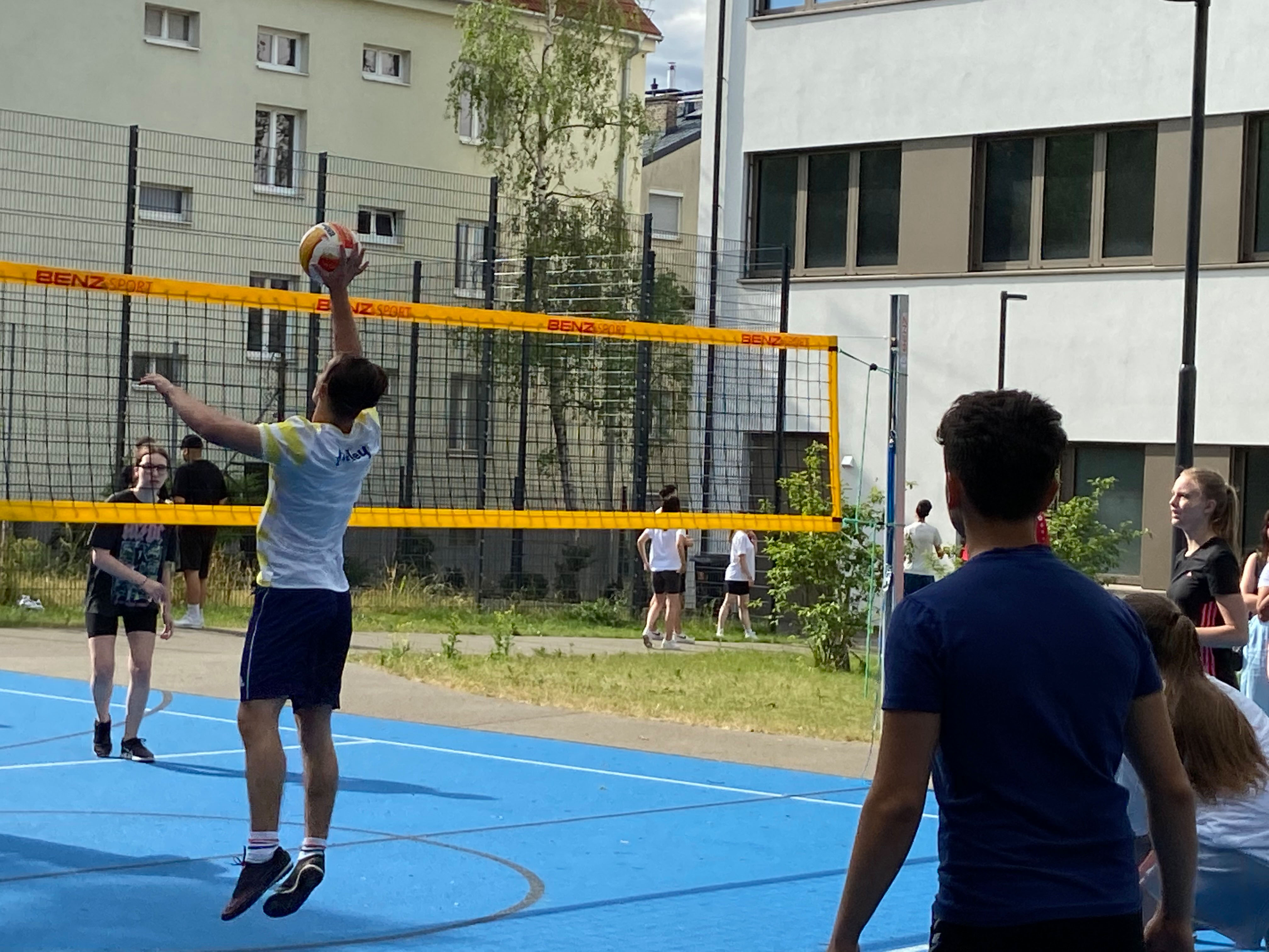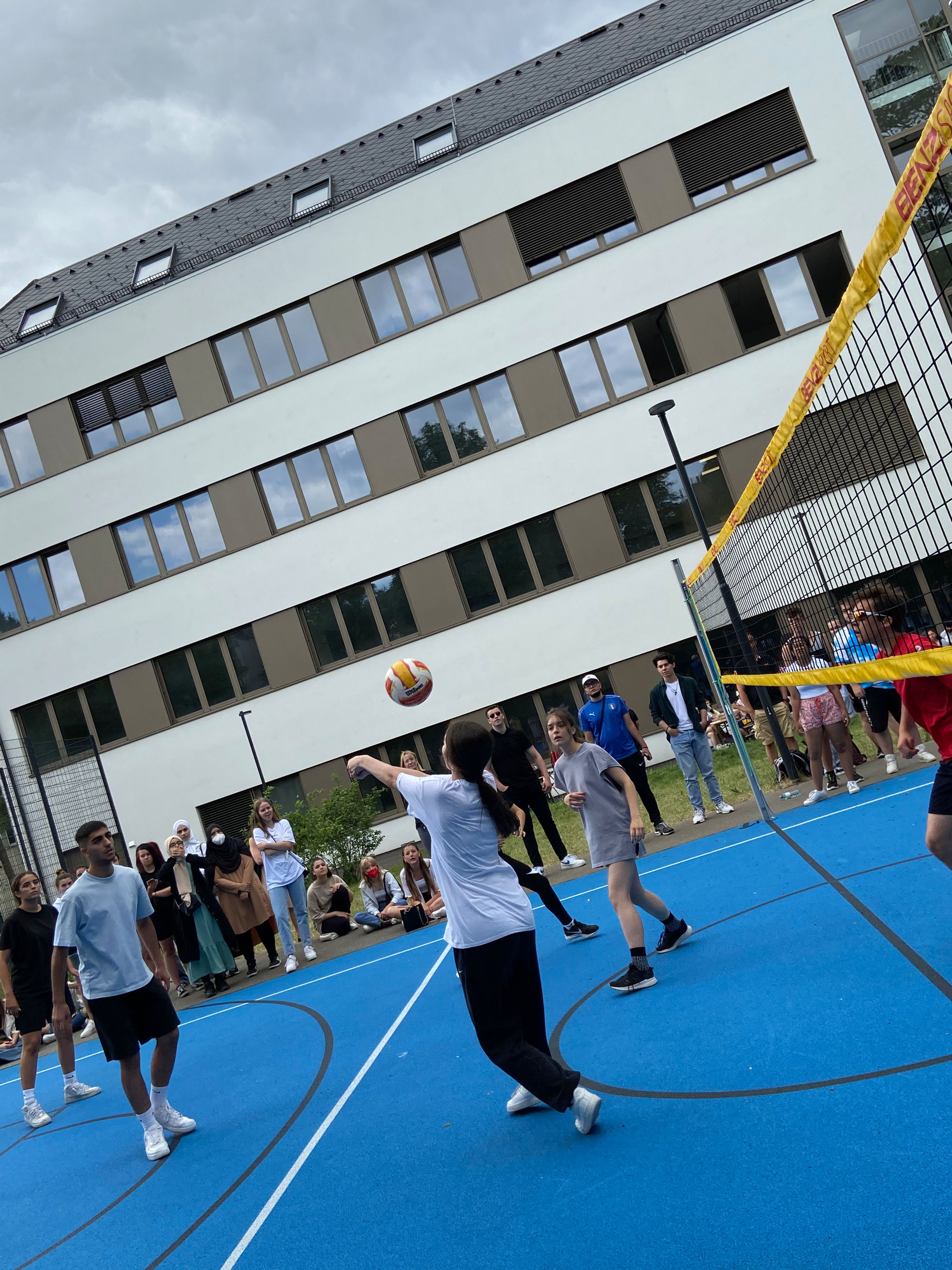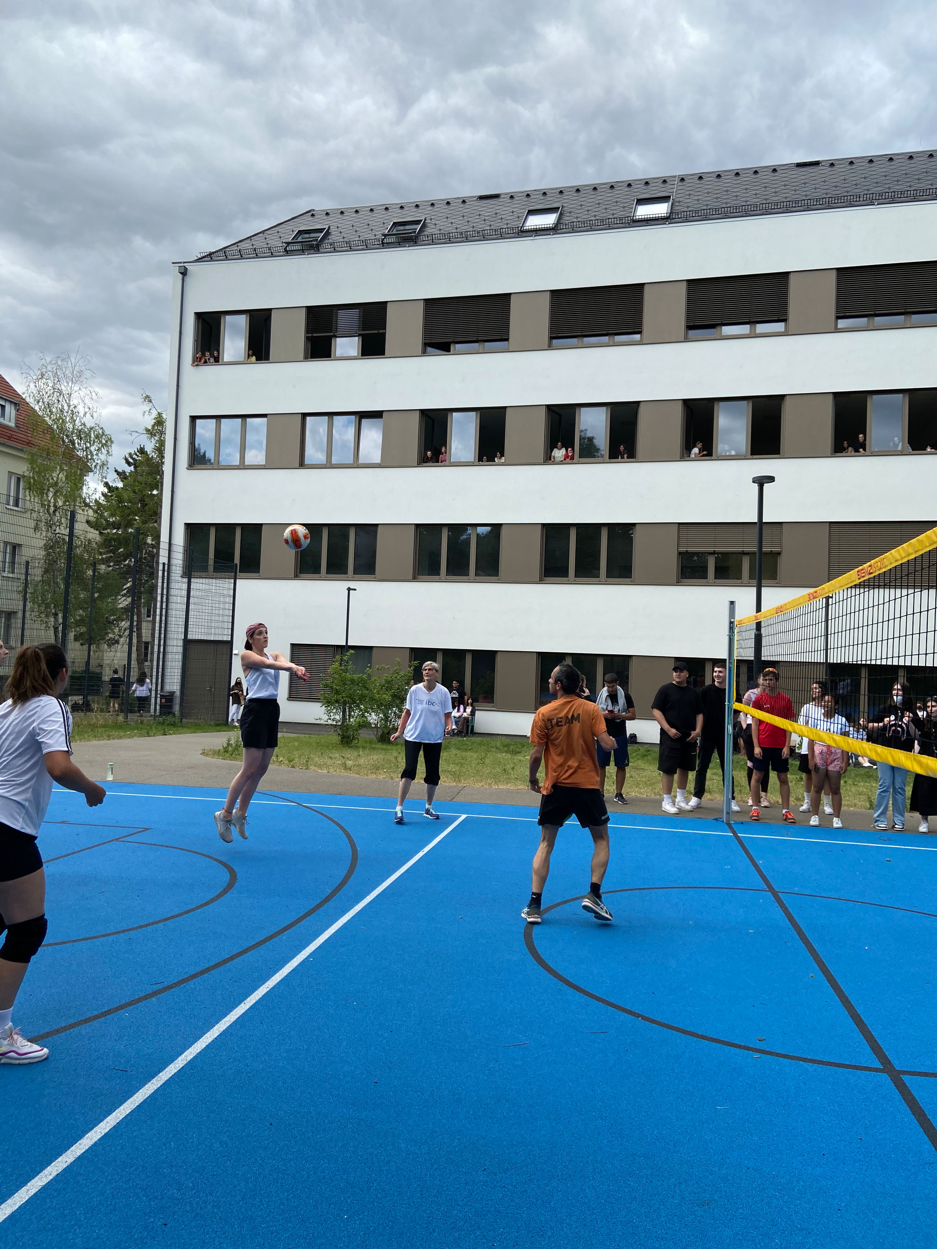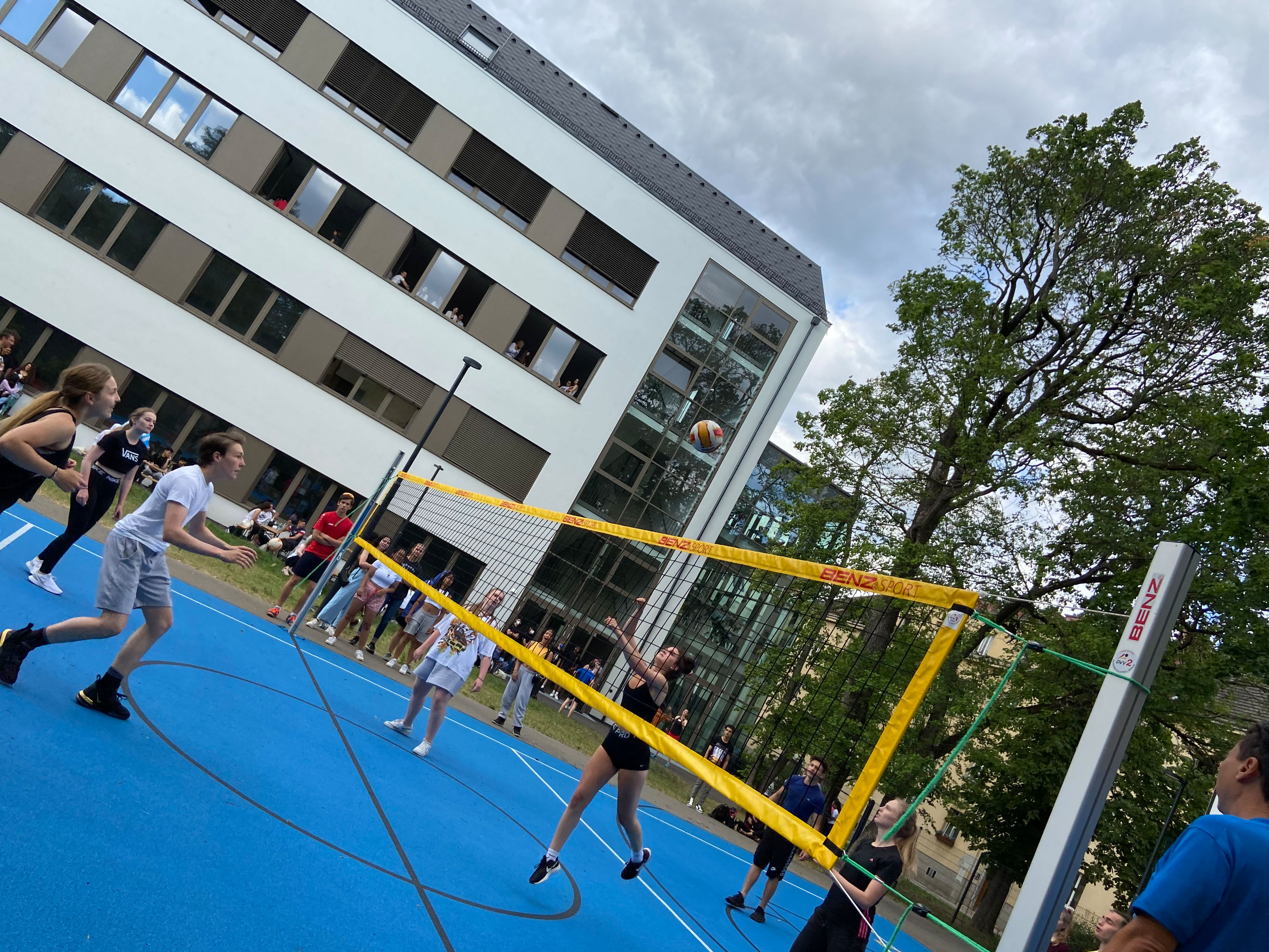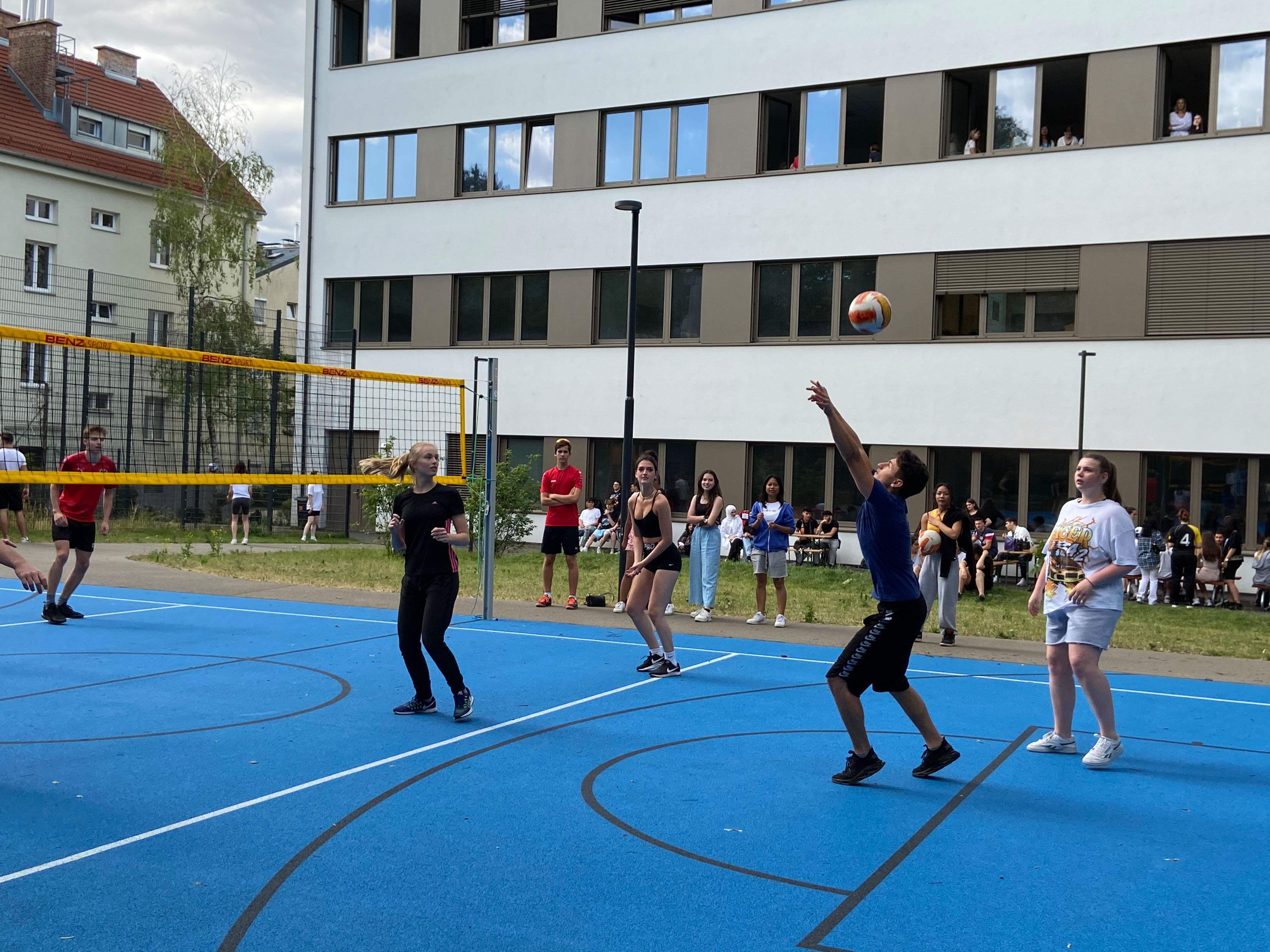 Am Mittwoch, den 30.06.2021, war es nach mehr als einem ganzen Jahr Corona-Pandemie endlich wieder Zeit, dass unsere Schüler*innen und Lehrer*innen Ihre sportlichen Talente zeigten. Bei herrlichem Wetter spielten die Gruppen im schuleigenen Sportpark miteinander Volleyball.