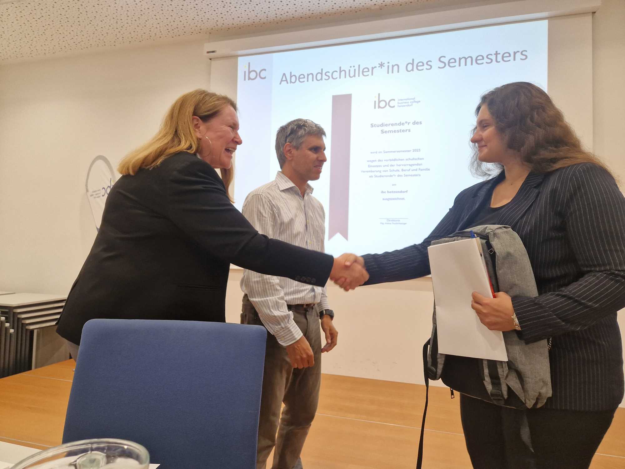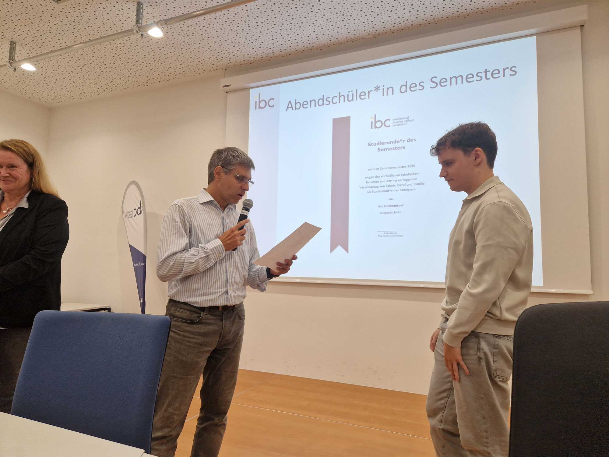 Die Lehrerinnen und Lehrer des ibc hetzendorf hatten die Preisträgerinnen und Preisträger vorgeschlagen. Mit dieser Auszeichnung soll nicht nur deren fachliche Kompetenz, sondern auch der Fleiß, das Engagement und die persönliche Entwicklung der Abendstudierenden gewürdigt werden.