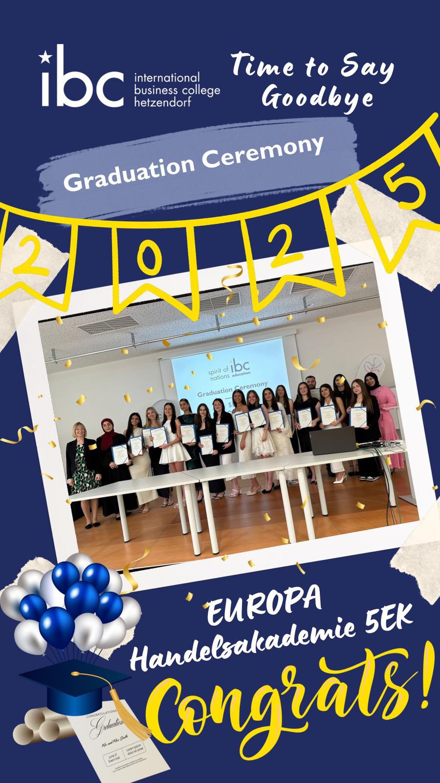 Die Schulgemeinschaft freut sich von Herzen mit den erfolgreichen Absolventinnen der 5EK über die bestandene Reife- und Diplomprüfung. Die Kandidatinnen des EUROPA-HAK-Zweigs haben in den letzten Jahren nicht nur fundiertes Wirtschaftswissen, sondern auch ihre internationalen Kompetenzen eindrucksvoll bewiesen. Mit diesem Abschluss sind ihnen nun die Türen zu weiterführenden Studien und spannenden Karrieren in ganz Europa geöffnet.