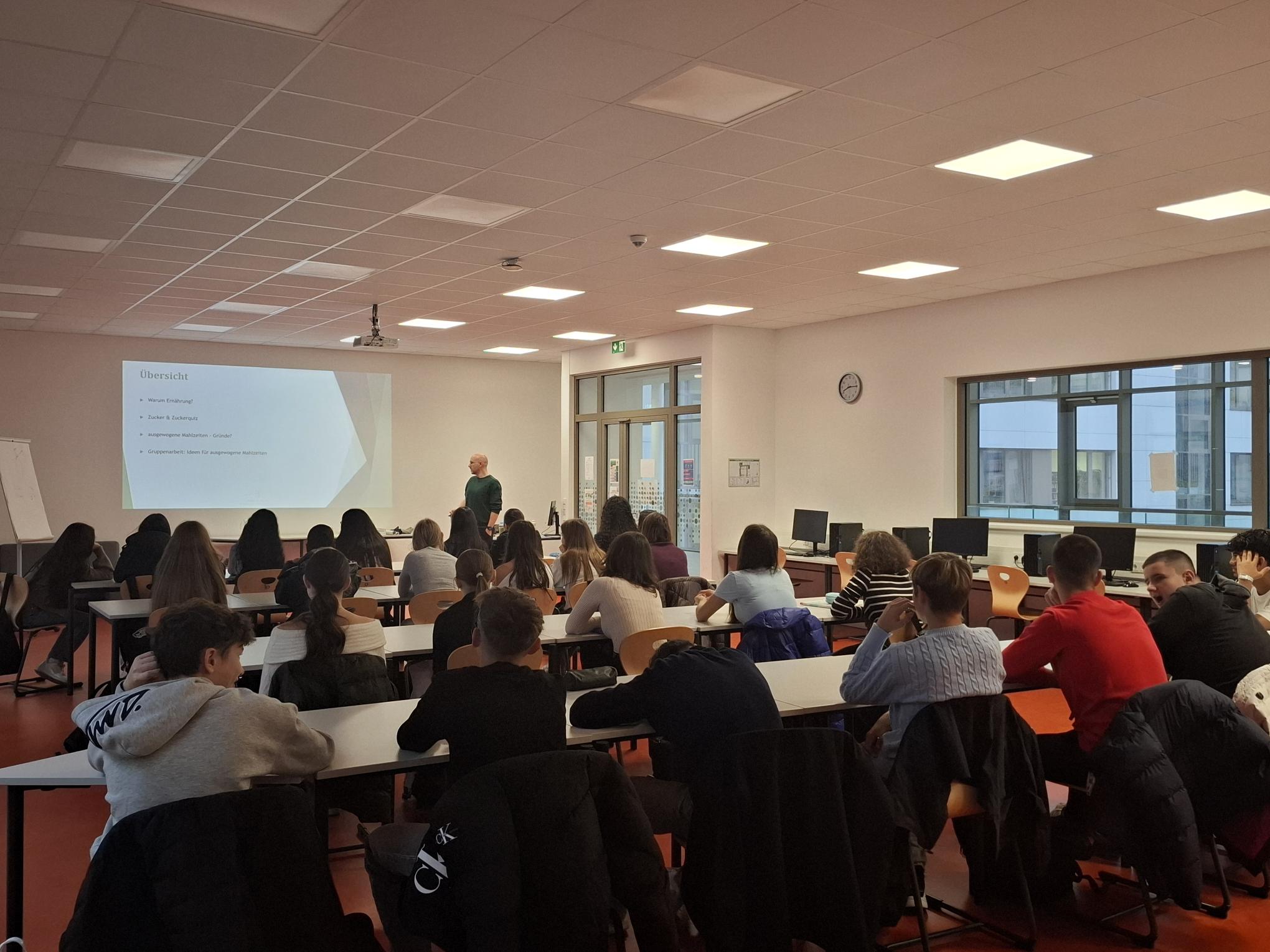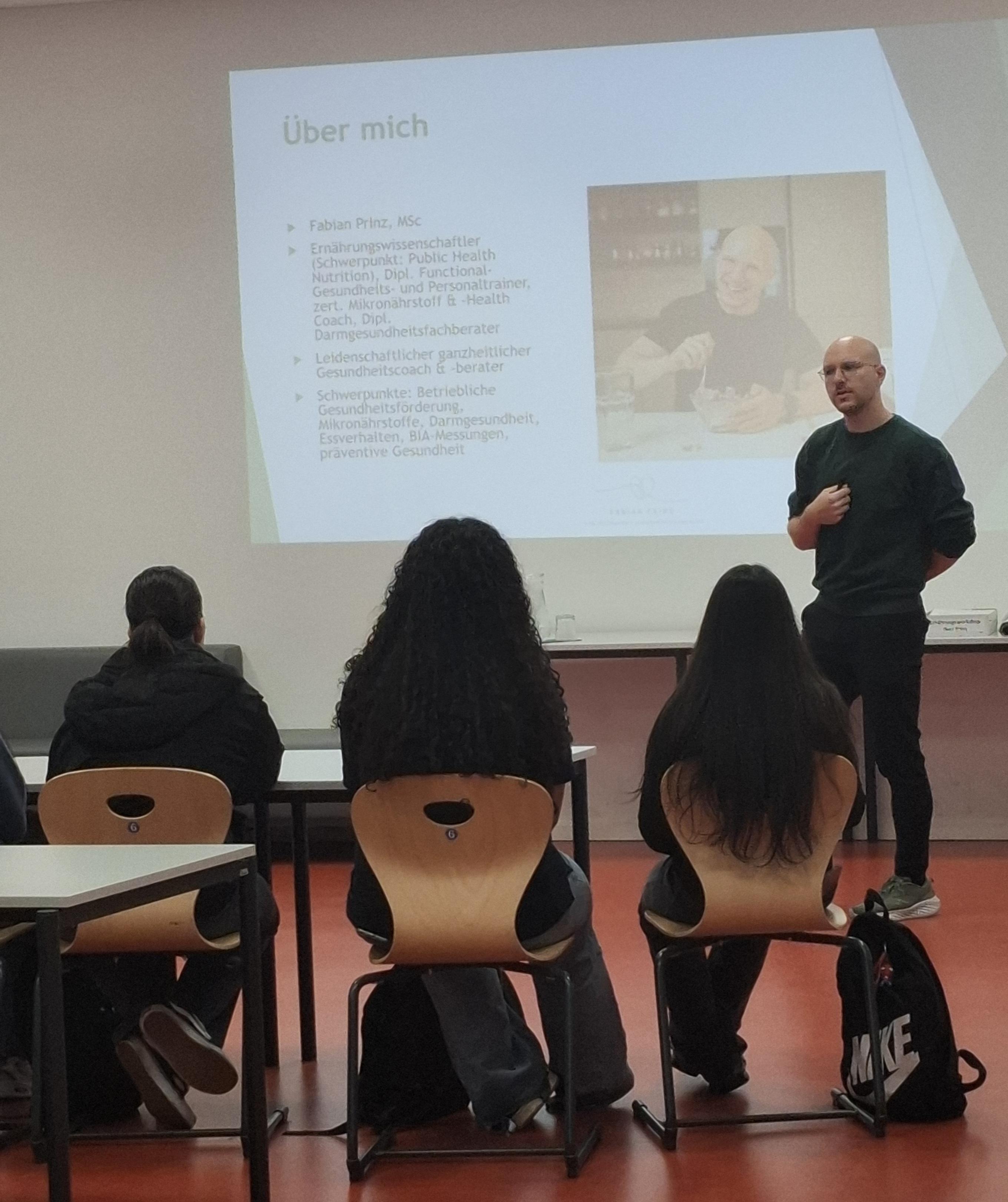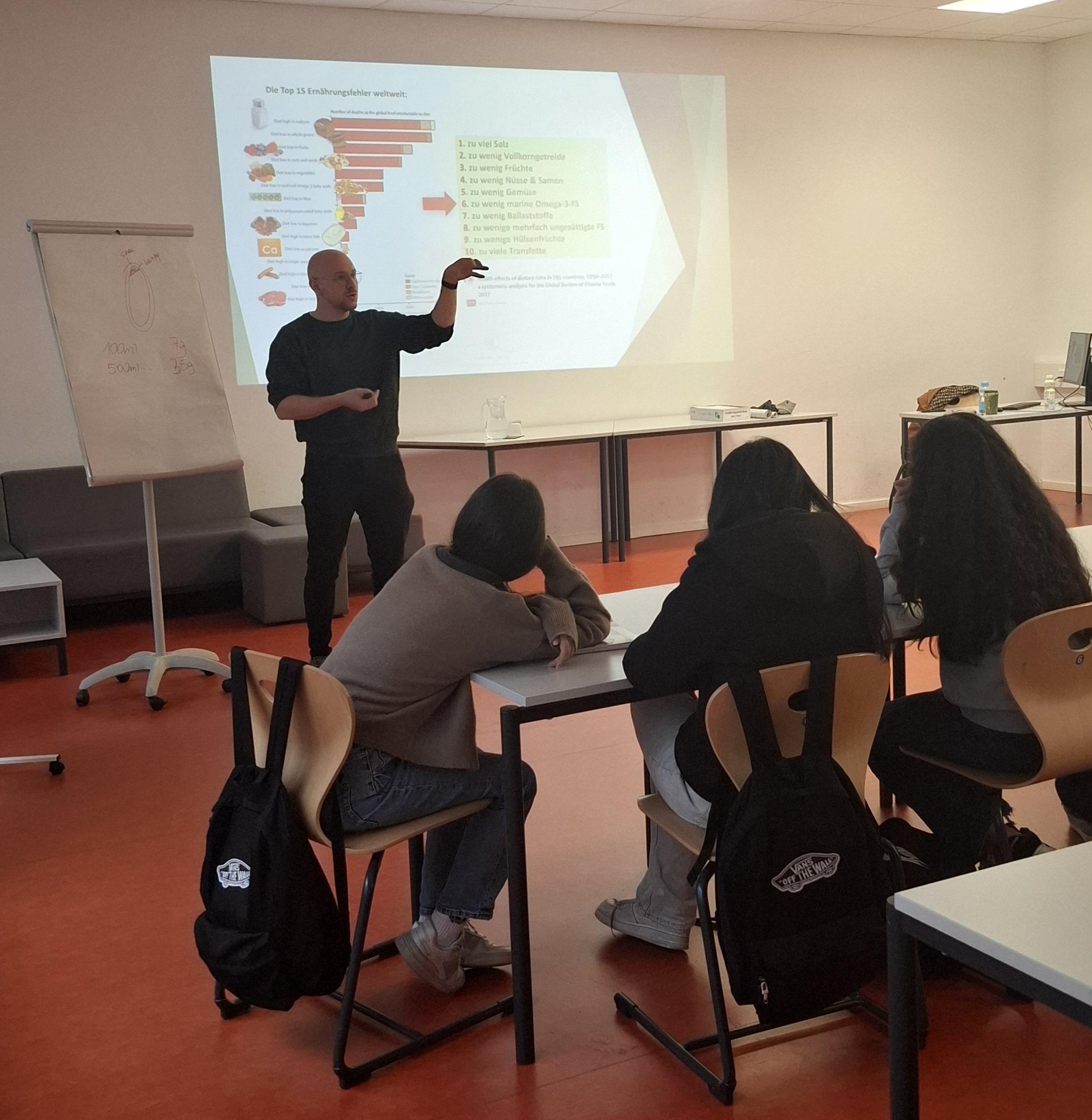 Der Workshop teilte sich in einen interaktiven Theorieblock und mehrere Gruppenarbeiten, um das theoretische Wissen praktisch anzuwenden. Dabei wurde unter anderem auf Themen wie präventive Gesundheit sowie die häufigsten Erkrankungen und Risiken im Zusammenhang mit einem ungesunden Lebensstil eingegangen. Abschließend wurden Tipps und Tricks für ausgewogene Mahlzeiten gegeben. Die Schüler*innen der ersten Jahrgänge waren sehr motiviert und haben eifrig auf Fragen geantwortet, ihre eigenen Erfahrungen und Gewohnheiten mit Mitschüler*innen geteilt und konnten Einiges an neuen Erkenntnissen mitnehmen.