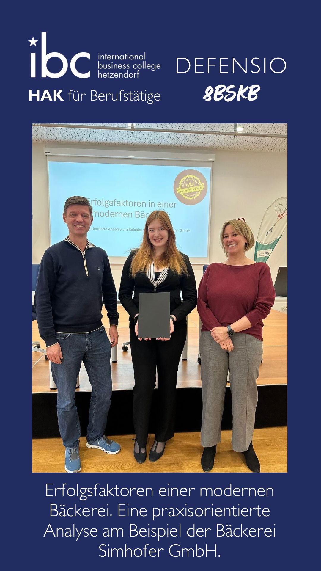 Ein wichtiger Meilenstein auf dem Weg zum Abschluss ist gesetzt: Im Rahmen des Matura-Wintertermins 2026 fanden am ibc hetzendorf die Defensios der Diplomarbeiten statt. Die Studierenden der Handelsakademie für Berufstätige sowie der Kolleg-Klassen präsentierten ihre praxisnahen Projekte und stellten sich im Anschluss den Fachfragen der Kommission.