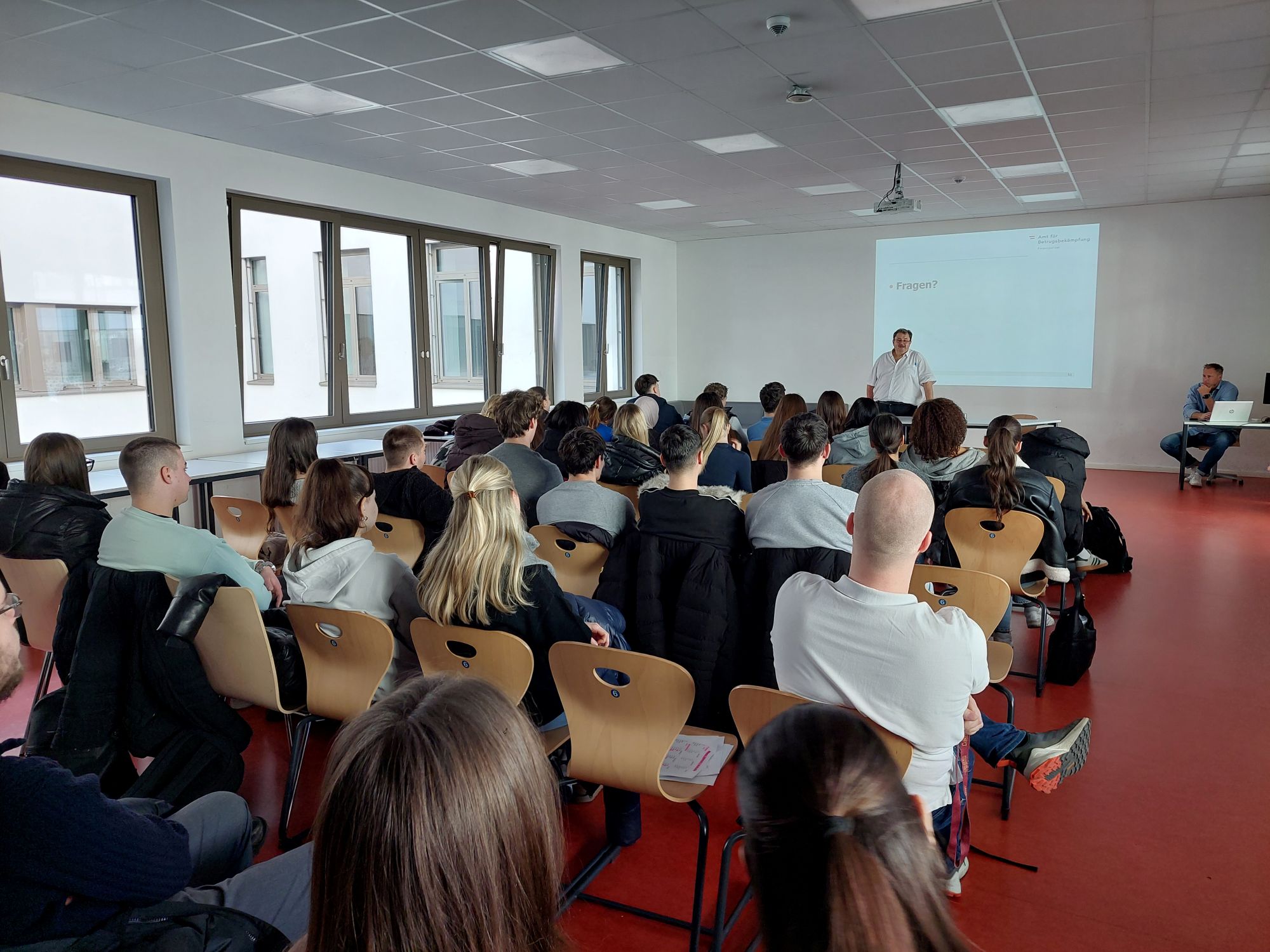 Am 25. Februar 2026 erhielten mehrere Abschlussklassen einen exklusiven Einblick in die spannende Arbeit der Finanzpolizei. Der Vortrag ermöglichte es uns, über den Tellerrand des klassischen Wirtschaftsunterrichts hinauszublicken und mehr über globales Lernen und Steuergerechtigkeit zu erfahren.