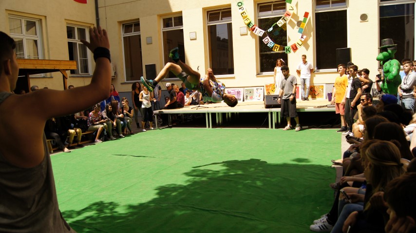 Zumba mit Frau Prof. Jenik, Spiralketten entwerfen mit Elternvereinsobrau Karin Mayer, Bildgestaltung mit Scheren mit Beate Wagner, R&B mit Vincent Bueno, Afrikanische Tänze mit Cathrine Adeyemi und Free Running mit Joji Schulz. Die Workshops Schach (Martina Süss und Manuel Troindl, 4bbik), Balkan-Tänze (Jasmina Pavnovic, Anna Bogdan,1aka), Türkische Tänze (Yusuf Ünal, 4ak), Albanische Tänze (Shpend Dodaj, 4ak), Spiele-Workshop (Mihaela und RaisaTrokicic), Hip Hop (John Patrick Olegario), Österreichische Standardtänze (Patrick Renner) und Creatives Süßes (Mercedes de Mercedes, 2abik, sowie Sandra Novotny, Gaye Kol, Elif Adigozel, 2ck) wurden von Schüler/innen bzw. Absolvent/innen geleitet. Herzlichen Dank!