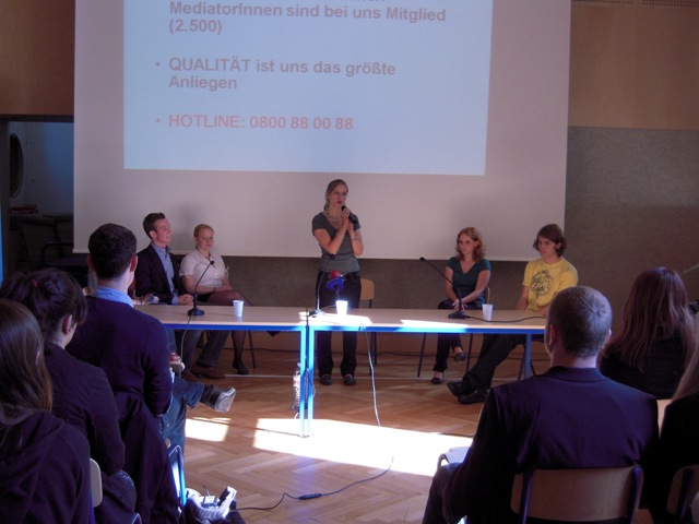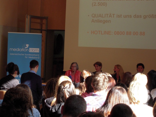 Schulen, SchulleiterInnen, LehrerInnen, SchülerInnen und Eltern, konnten sich über Schulmediation- und Peermediation informieren und austauschen! Die Peer-MediatorInnen am ibc-: unterstützen SchülerInnen der ersten Klassen beim Neueinstieg in den Schulalltag in einer neuen Schule, gestalten Workshops mit den Schülern zur Verbesserung des Klassenklimas und bieten die Möglichkeit an Konflikte mit den Peers gemeinsam zu bearbeiten und Spannungen abzubauen.