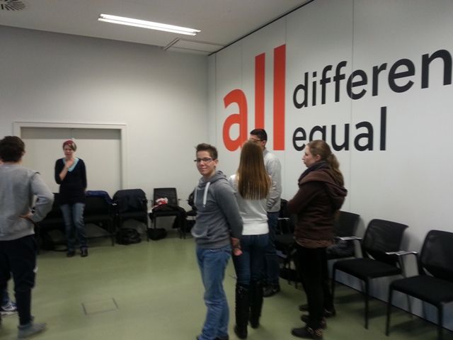 Wir hatten dann eine kurze Pause, in der wir im Aufenthaltsraum etwas zu essen bekamen und nach der Pause bekamen neu gebildete Gruppen ihre Arbeitsmaterialien.